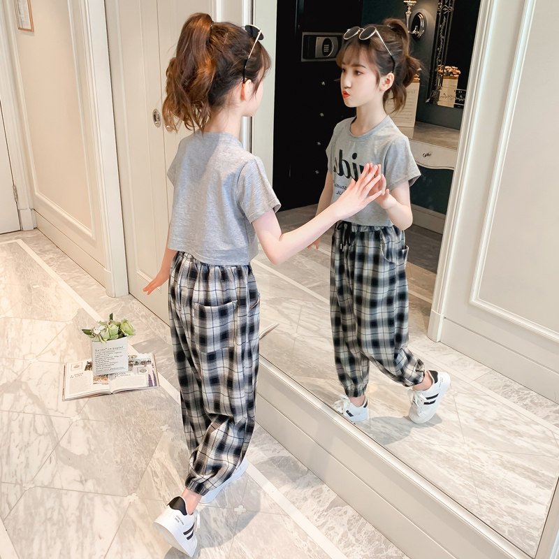 Girl Nets Red Suit Foreign Pie Summer Dress 2022 New Trendy Short Sleeve Tide Children Suit CUHK Children Sports Two Suits