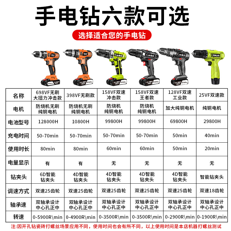 German Import High Power Lithium Battery Flashlight Turn Drill Power Tool Big Full Rechargeable Electric Drill Electric Drill Home