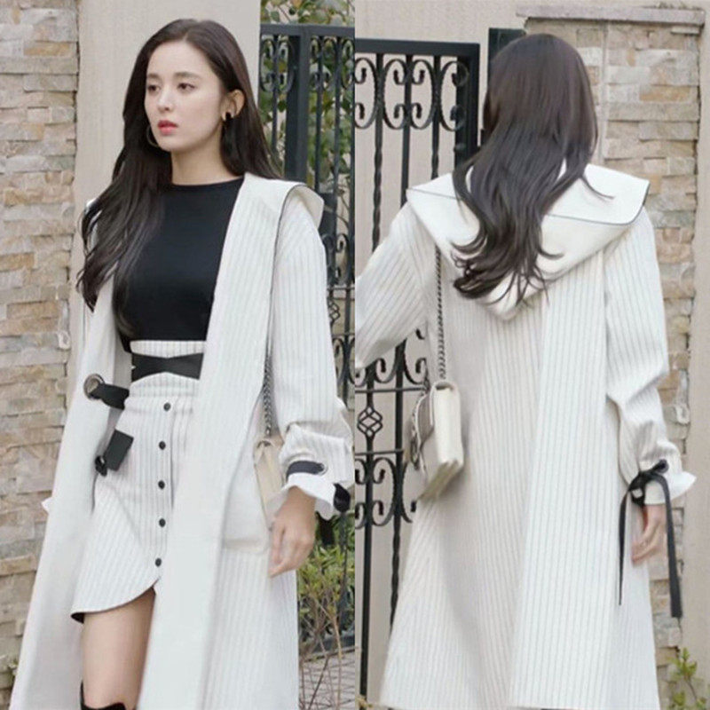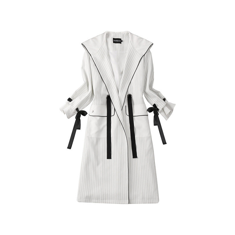 This year's popular mid-length trench coat women's high-end Gulinaza with the same striped loose coat skirt suit