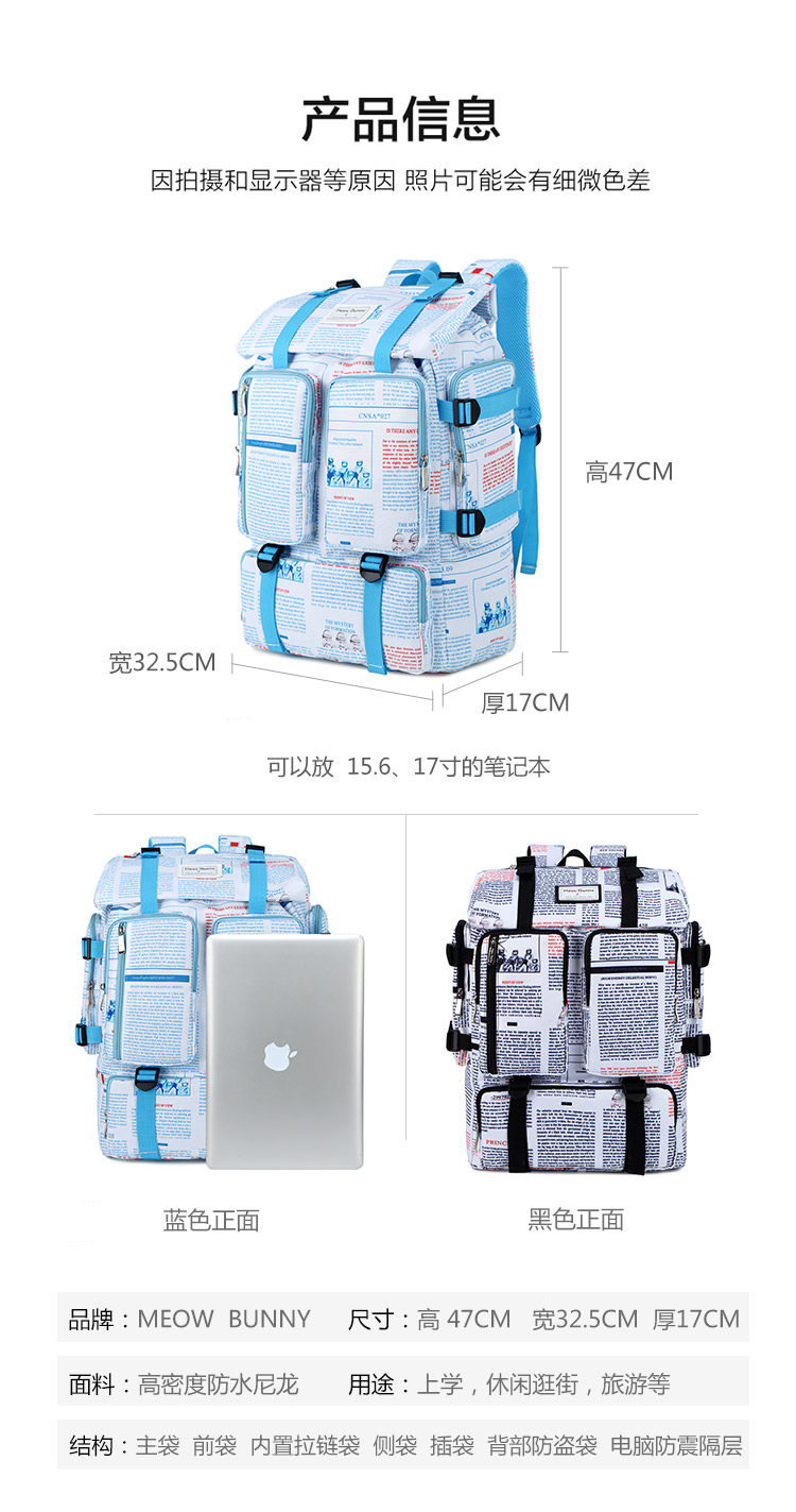 ER school bag women's oversized capacity backpack travel backpack multifunctional leisure travel bag space blue theme