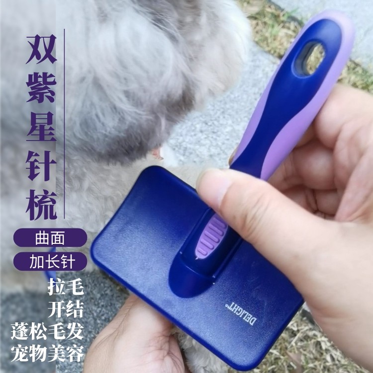 Boat Needle Comb Double Purple Pet Beauty Catty Dog Brush Puff Brush Putting Swing Puppies Teddy Bear