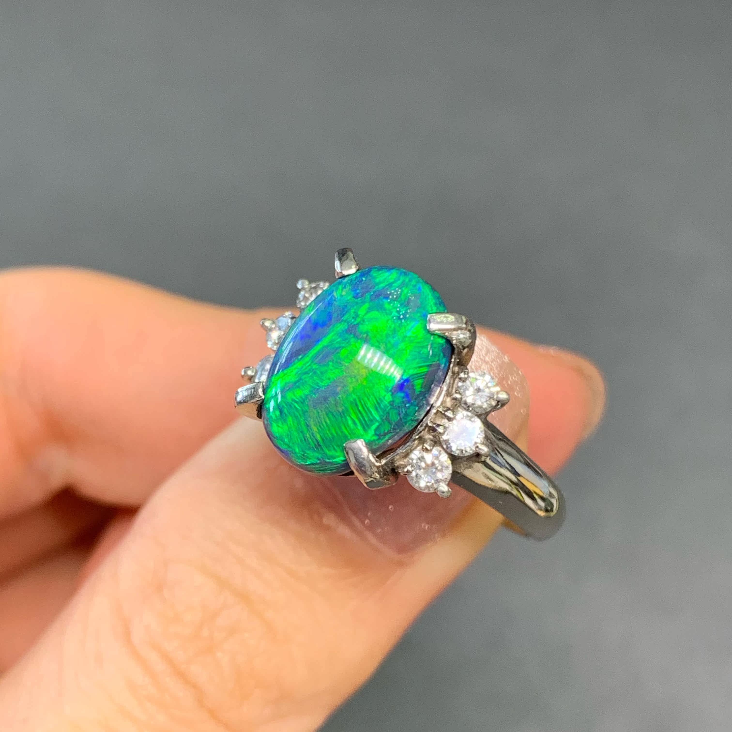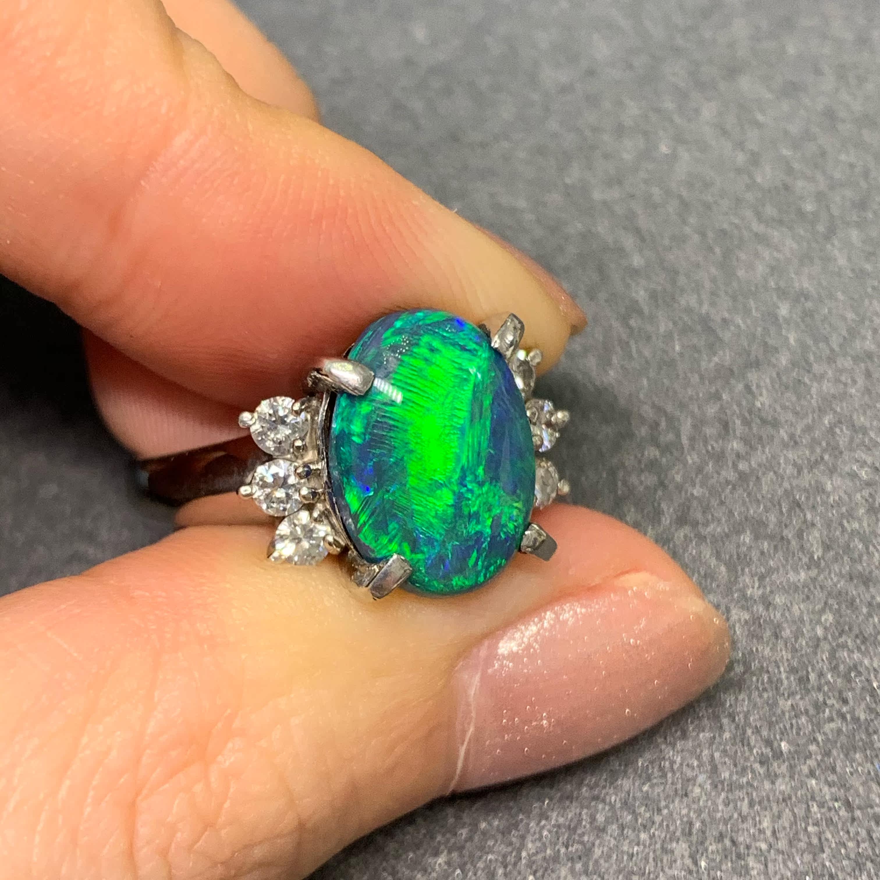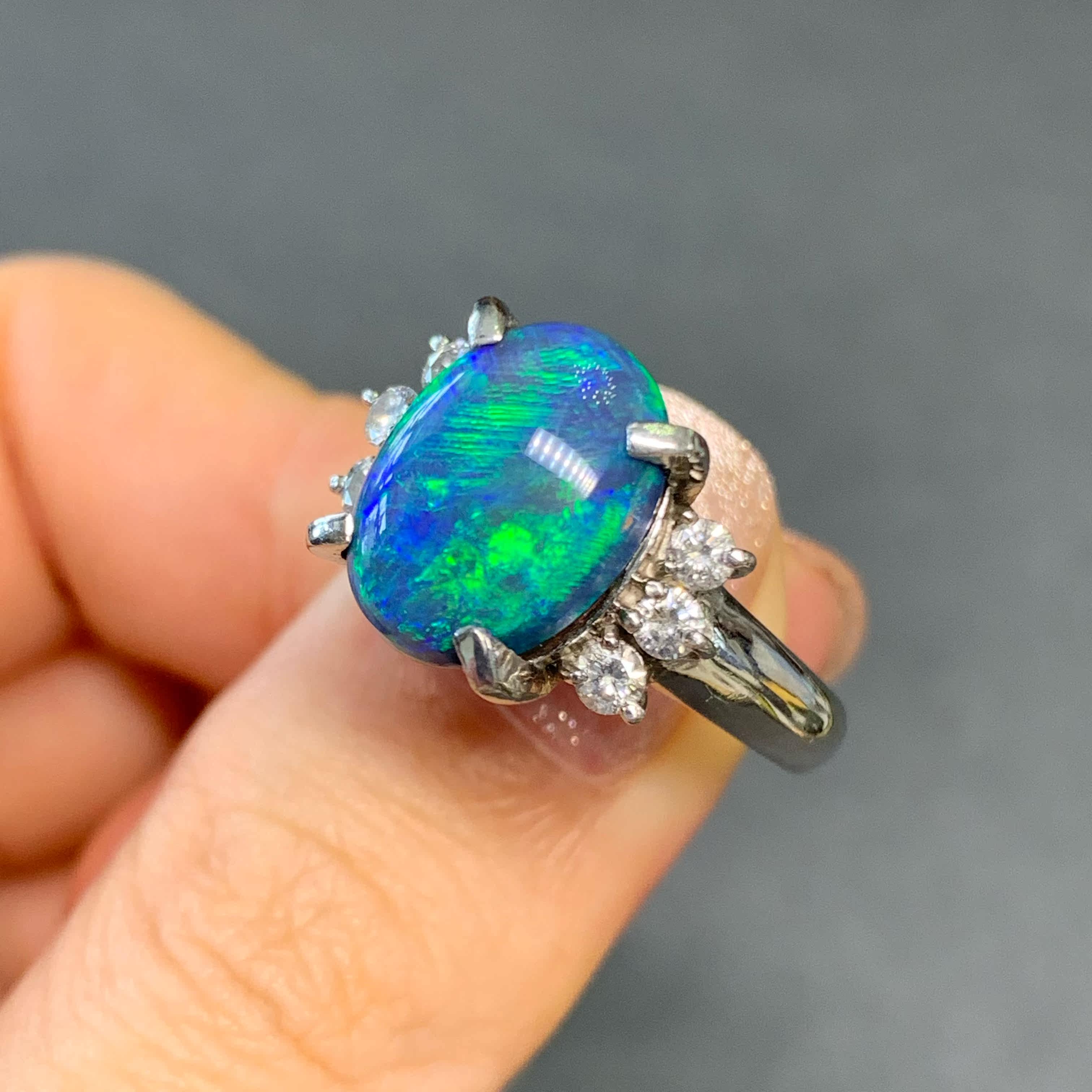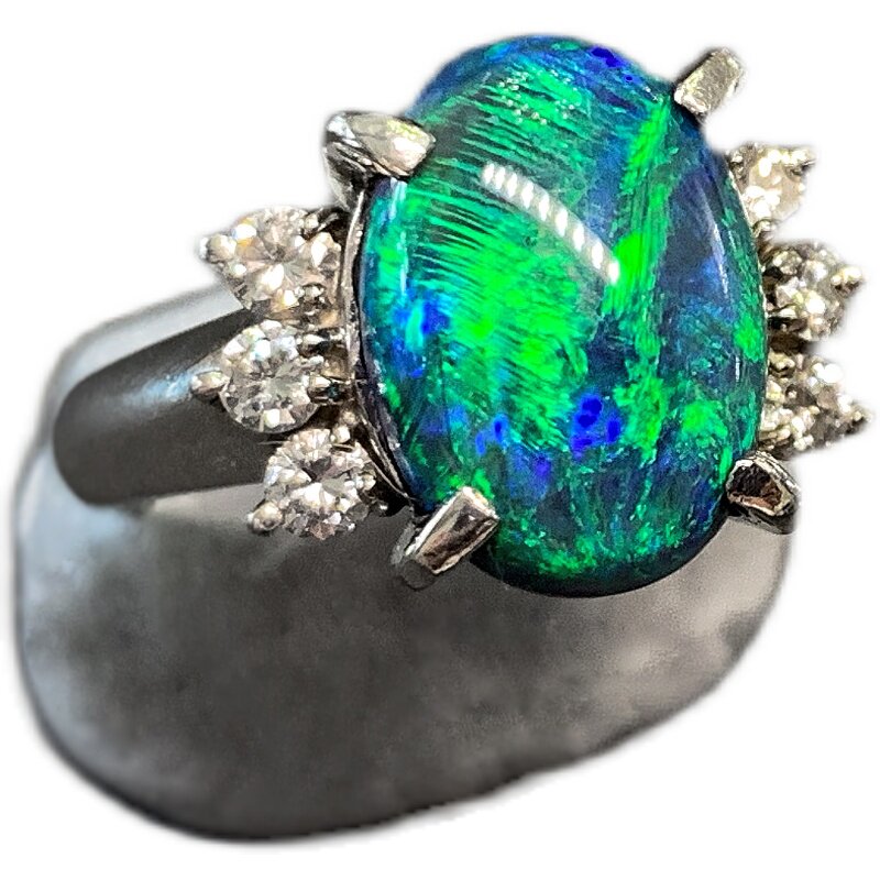 Sold Opal Island Boutique Blue Green Color Black Opal Goose Feather Seal Ring