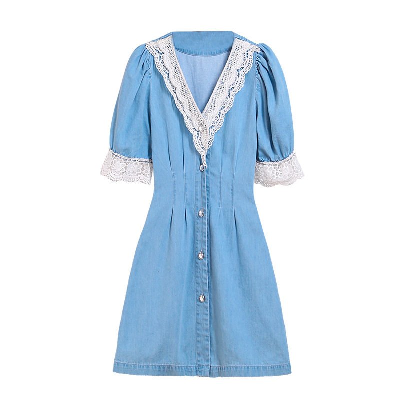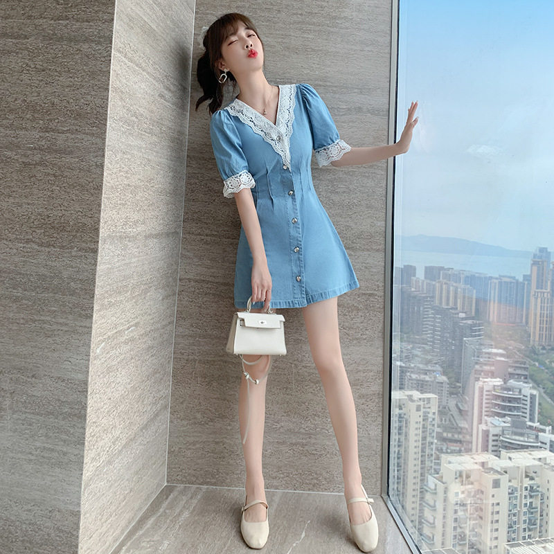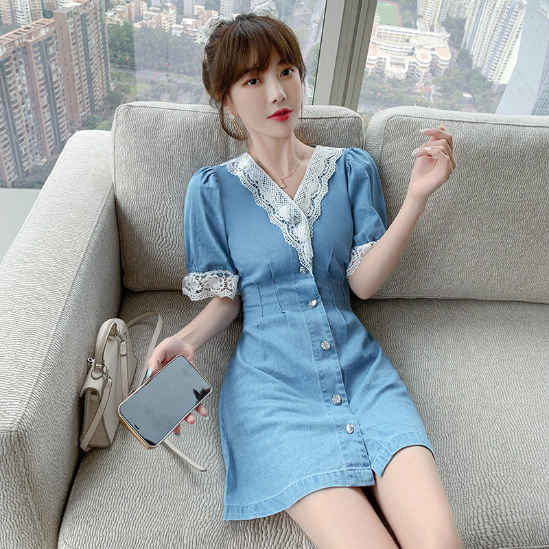 2021 summer new Korean version of the sweet high-waisted thin denim skirt women's age-reducing stitching dress