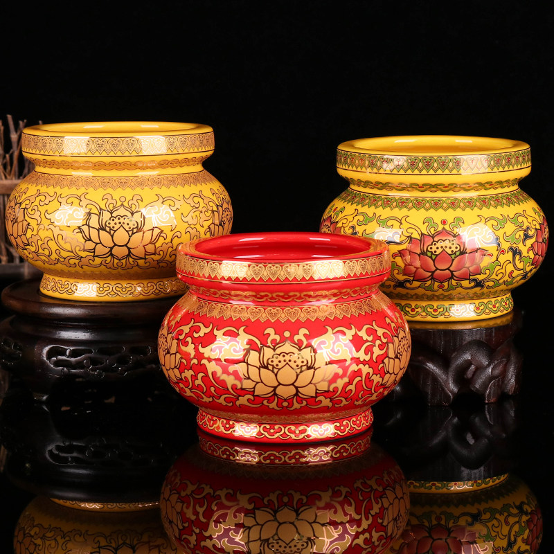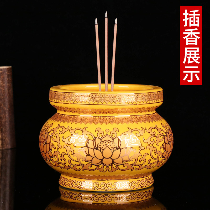 Ceramic Incense Stove Home for Buddhist Gods For Fairy Hearts Through Incense Stove Small Burning Incense Stove Real Gold Tang Color Lotus Flower Insertion Stove