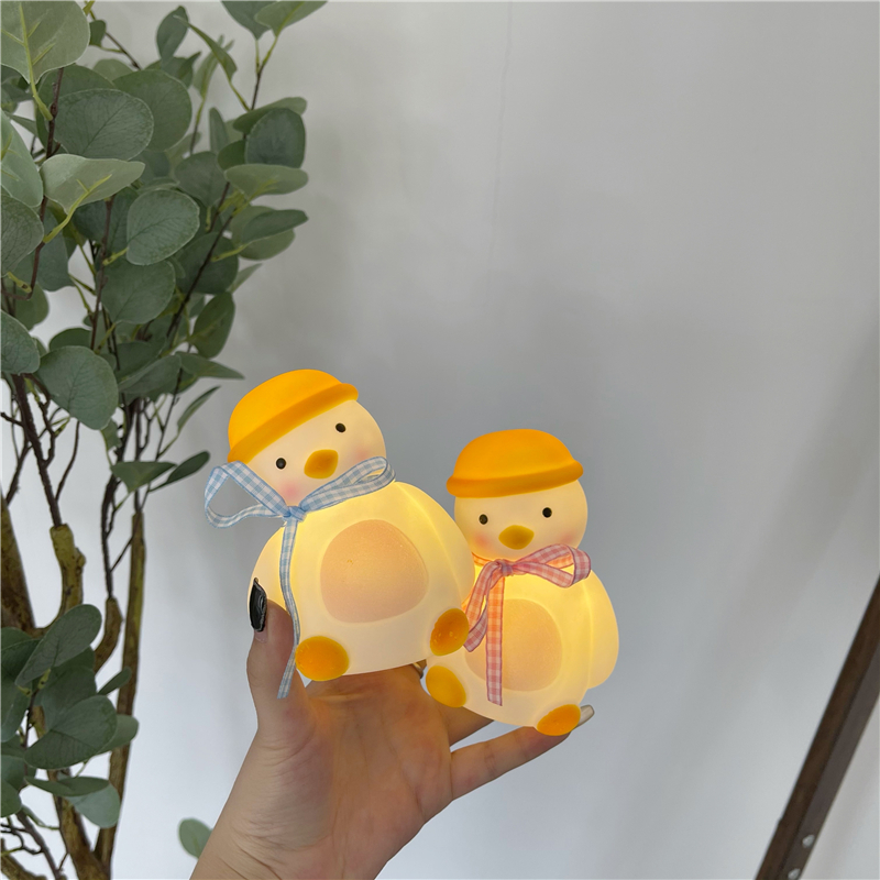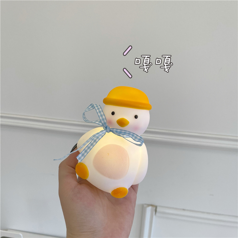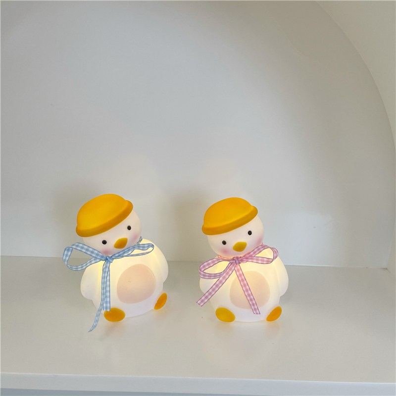 Korea ins cute crooked duck LED lucky duck ribbon with small night light room Bedroom bed head lamp swing piece dorm room