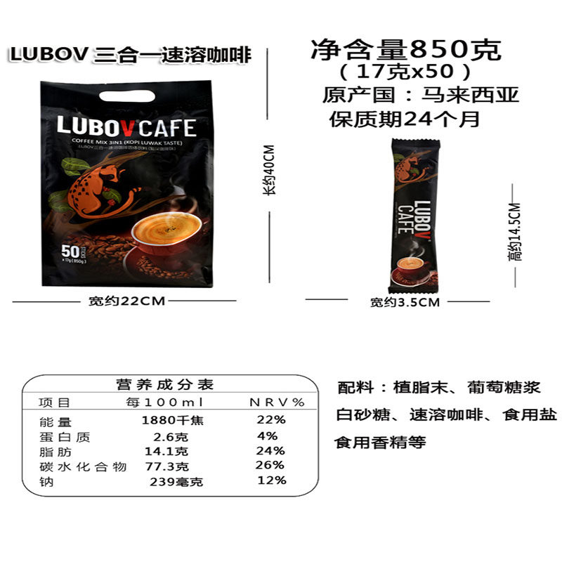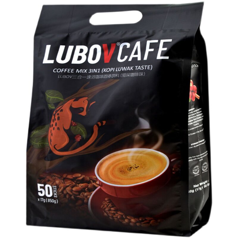 Imported Malaysian Cat Poo Coffee Instant 850 gr 50 Pack Three and one can be iced with a refreshing coffee spoon