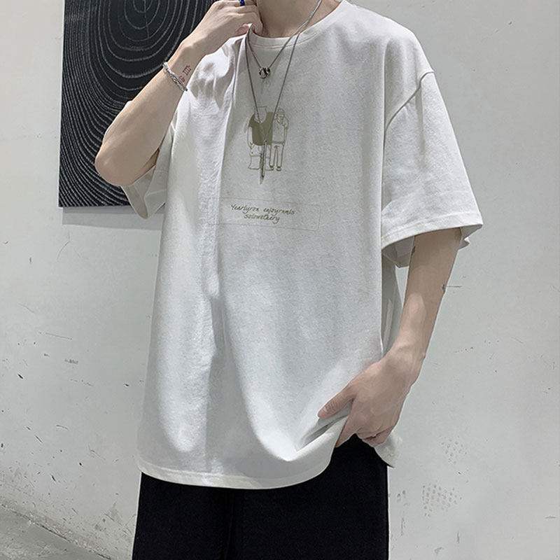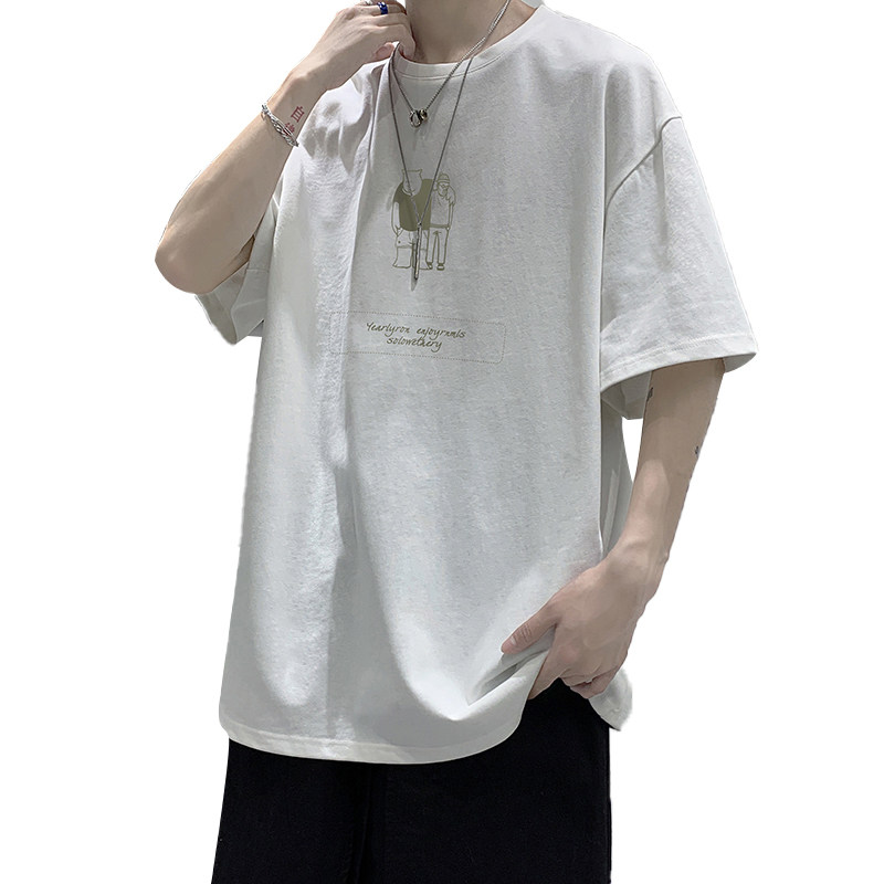 Short sleeve T-shirt male summer day series trendy large size loose casual pure cotton 50%-sleeve T-shirt for men's boomer blouse
