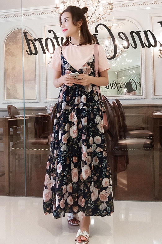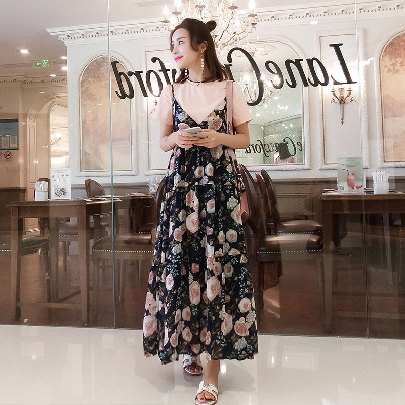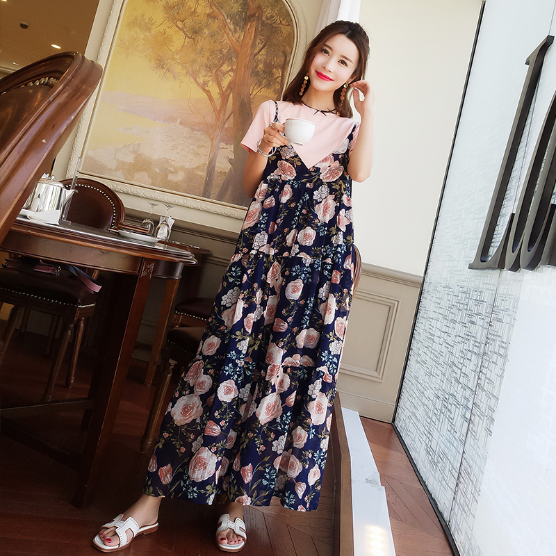 Pregnancy Woman Dress Summer Dress Ocean Dress Foreign Style Snowspun Harnesses Foreign Dress Suit Loose Large Size Skirt Two-piece Set