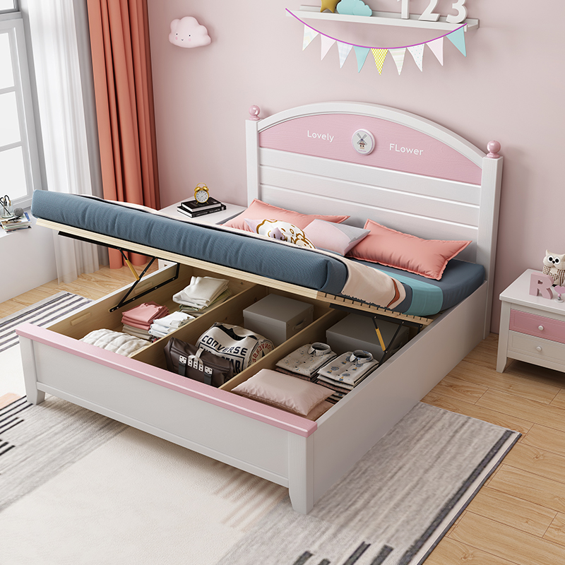 Children's bed girl 1 35m simple 1 5 meters teenage big children's bed pink 1 2 meters princess bed solid wood storage