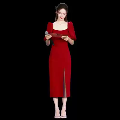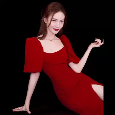 Stars with the same style toast, the bride can usually wear a burgundy engagement dress in the autumn return dress