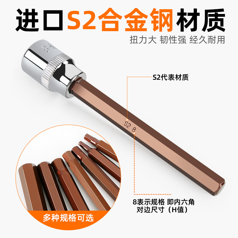 Inner hexagonal sleeve midplane 6 angle lengthened 110mm screwup sleeve electric screw driver plus hard S2 inner hexagon batch head