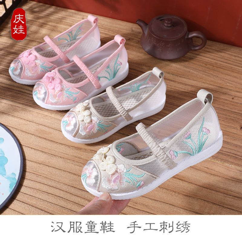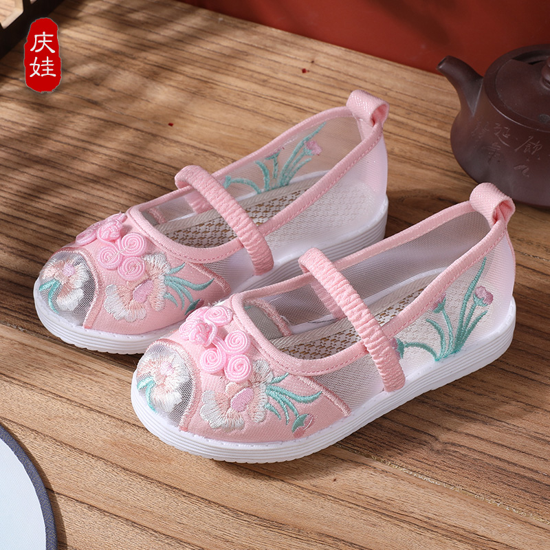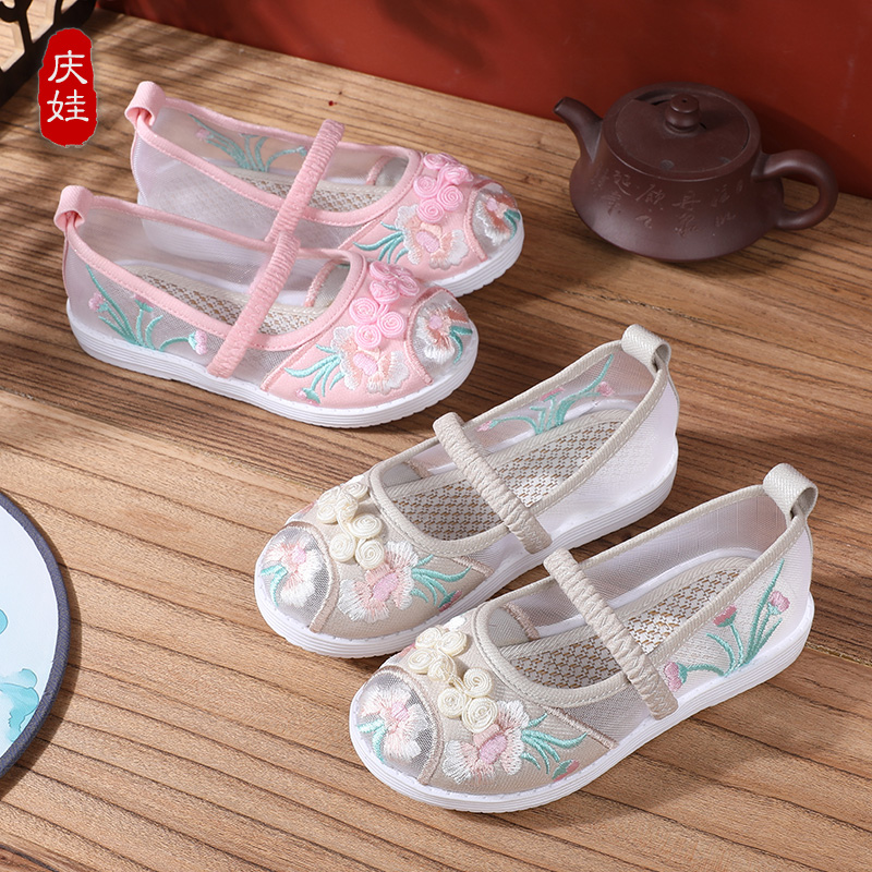 Children's embroidered shoes 2022 summer new girls' Hanfu shoes ancient costume ancient style old Beijing cloth shoes net gauze shoes summer