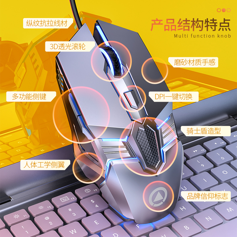 Silver carving G12 game mouse wired sports silent mechanical office desktop computer laptop macro mouse