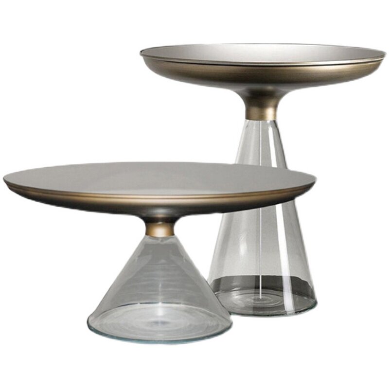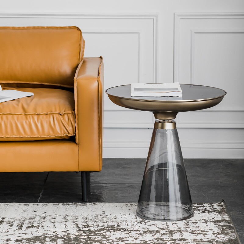 Light luxury new glass circular metal edge of several modern designers transparent color black angle several high and low customization