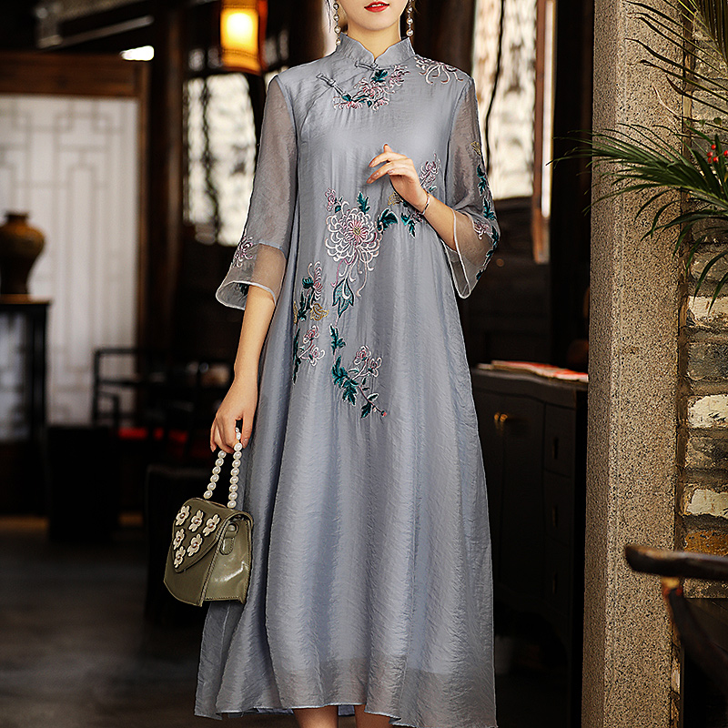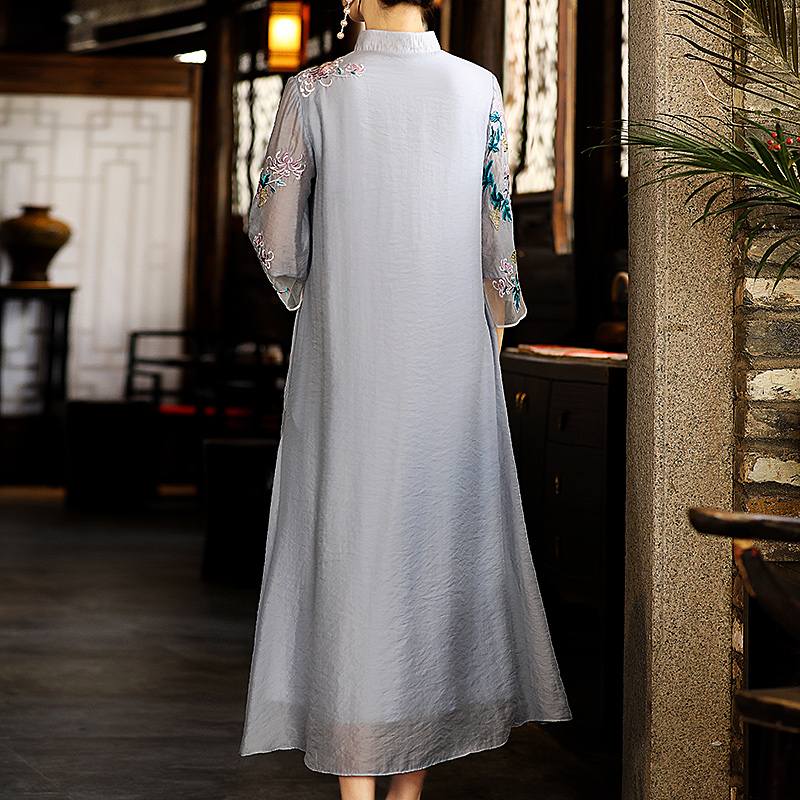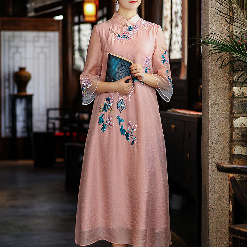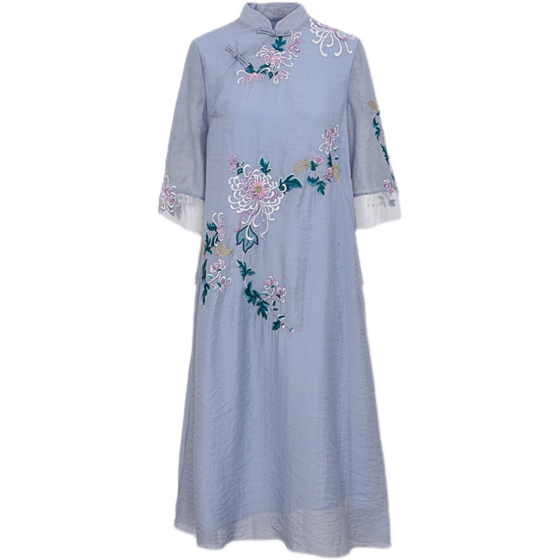 Cheongsam improved version dress Chinese style women's summer loose large size ethnic style embroidery daily antique skirt