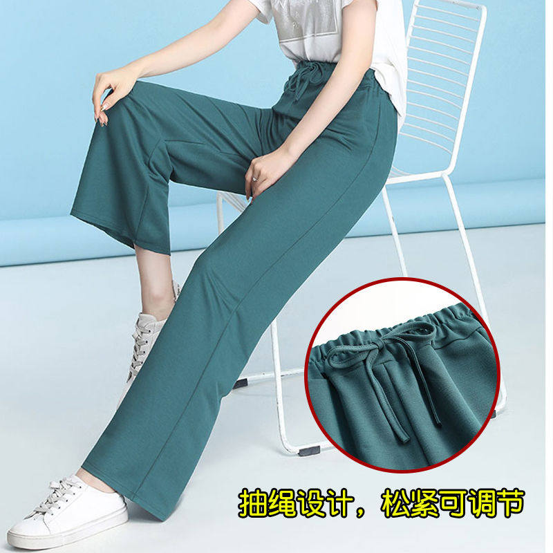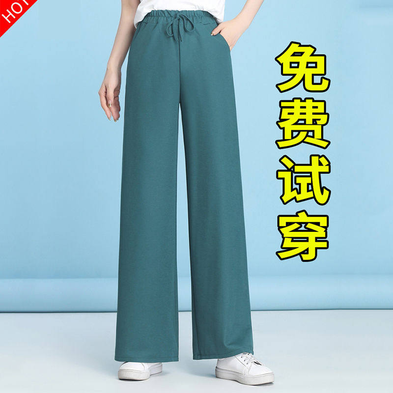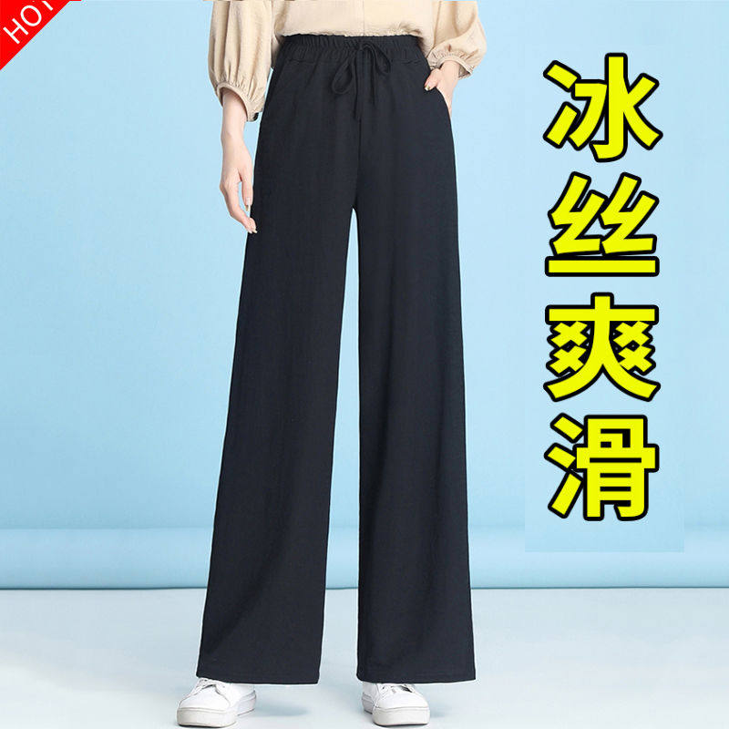 Ice silk wide-leg pants women's summer thin section high-waisted drop feeling loose and thin all-match black straight casual mopping trousers