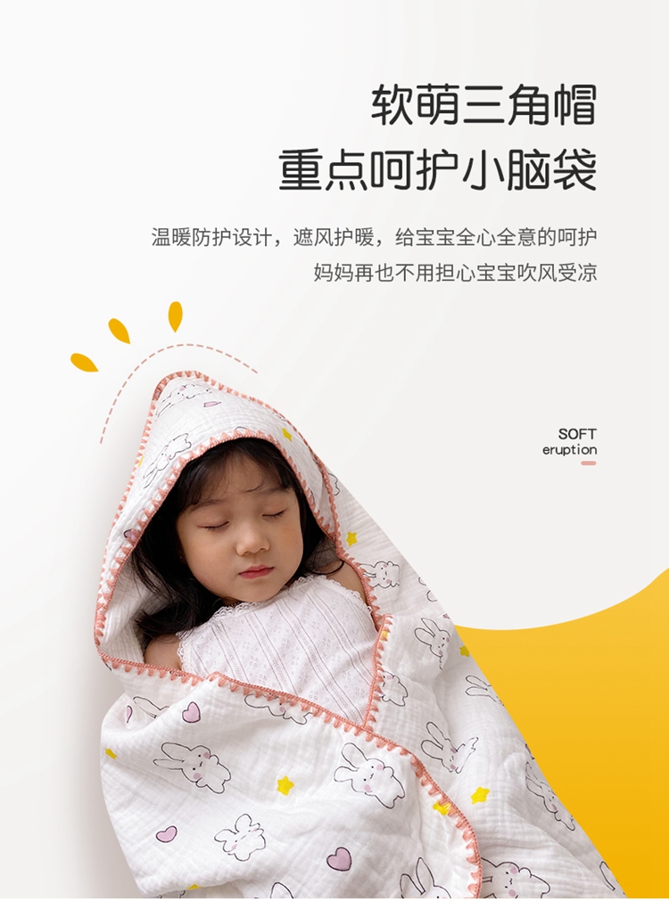 Newborn baby cotton gauze quilt Spring and summer thin baby children's super soft absorbent hooded bath towel