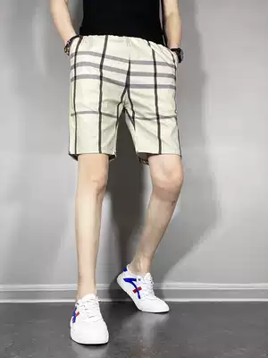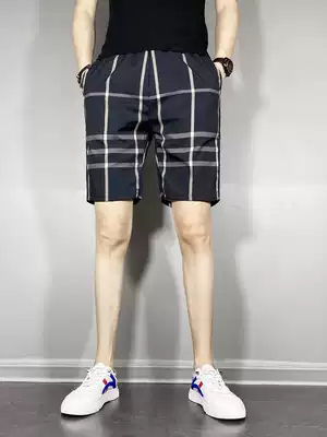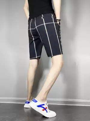 Summer plaid shorts four-point pants trendy men's thin casual men's five-point pants Korean version of the trend all-match beach pants kz