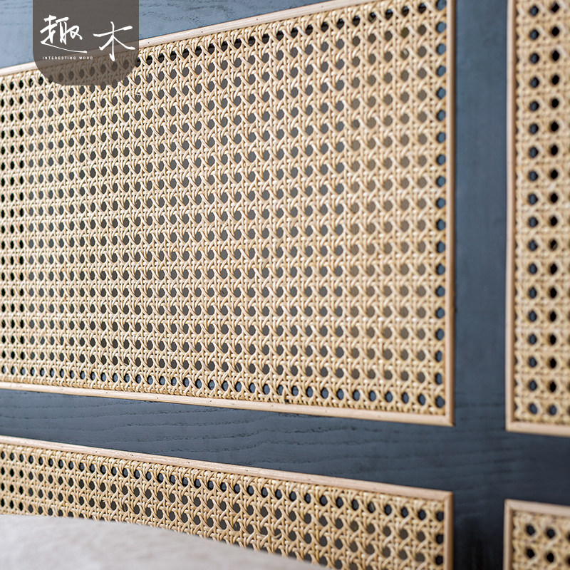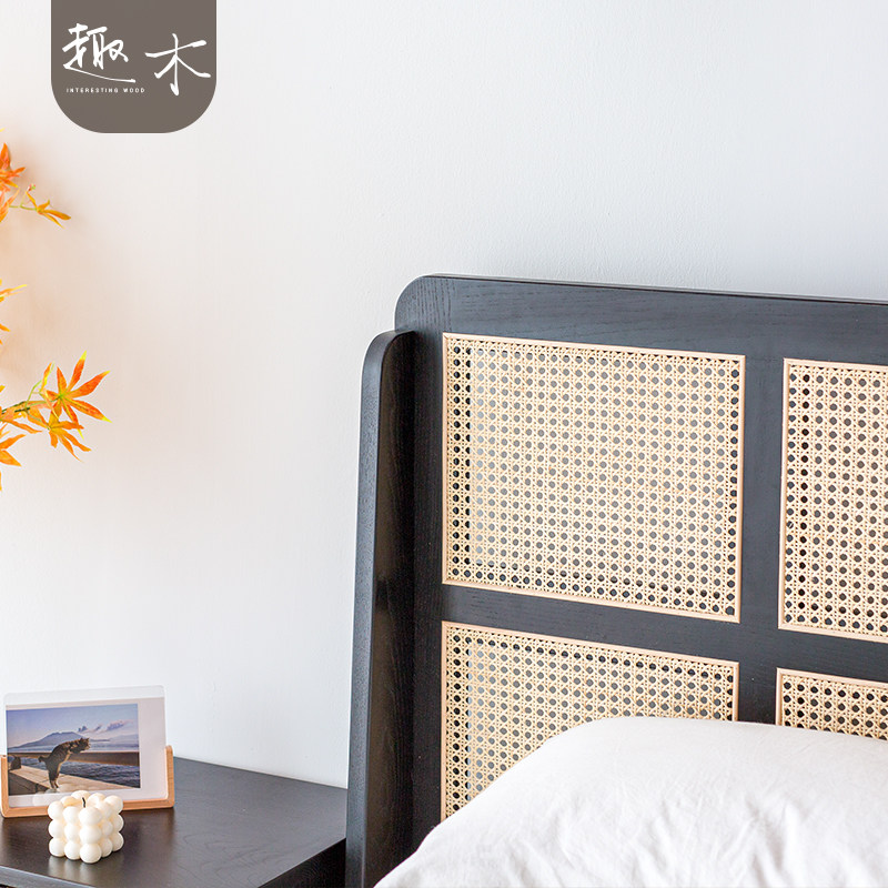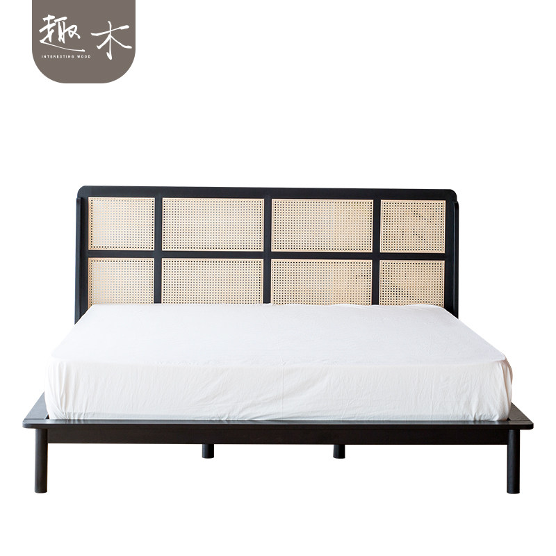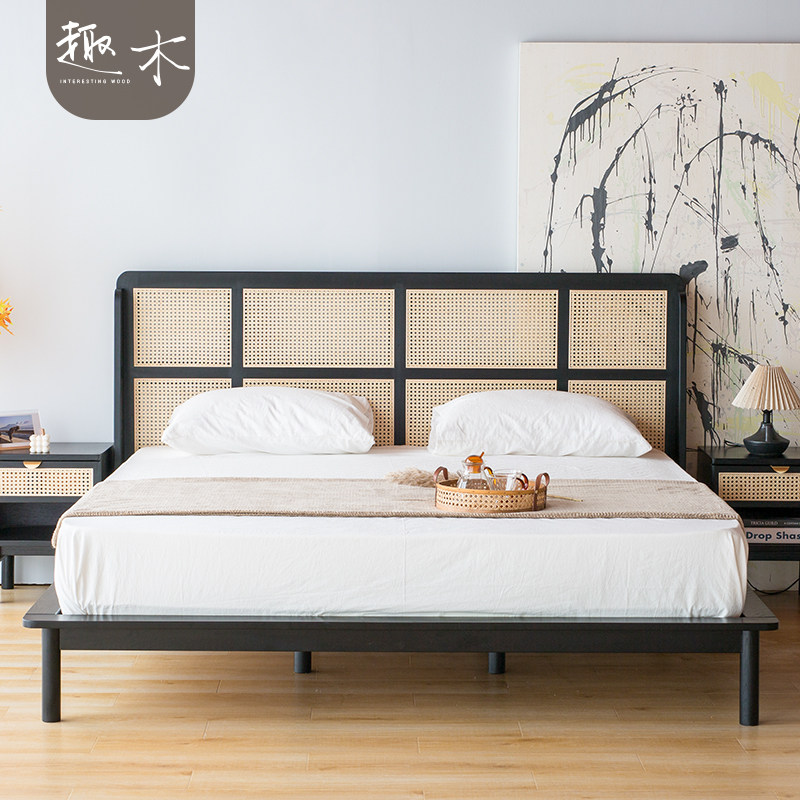 Nordic Japanese-style rattan bed modern minimalist design wabi-sabi style CANE rattan solid wood 1 8 meters double bed black