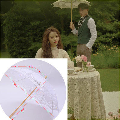 European mirror 1 acrylic round selfie mirror English coffee cup 1 set of cotton lace umbrella 1 round table 1 hand woven basket 1 hollow moon bag straw woven moon bag