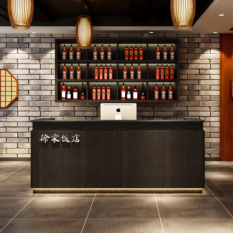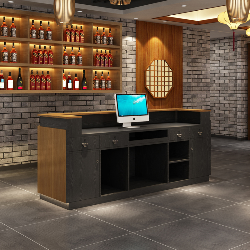 Solid Wood Retro Collection Silver Counter Hotel Bar Commercial Catering Restaurant Front Desk Dining Room Dining Room Commercial Wine Cabinet