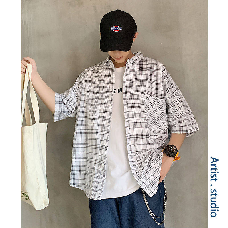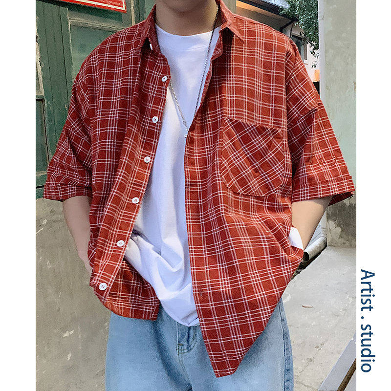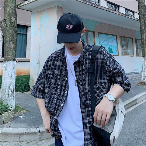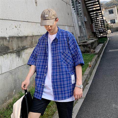 Summer short sleeve shirt men's Korean version Trend loose casual half-sleeve lovers shirts Inn wind men's clothing