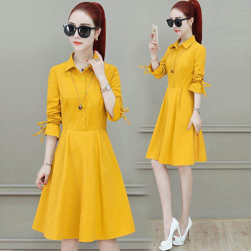 Spring Summer Season New Women's Dress Fairy Dress Woman Dress Up in Long version Long sleeves Bottom Han version Temperament Shirt Dress