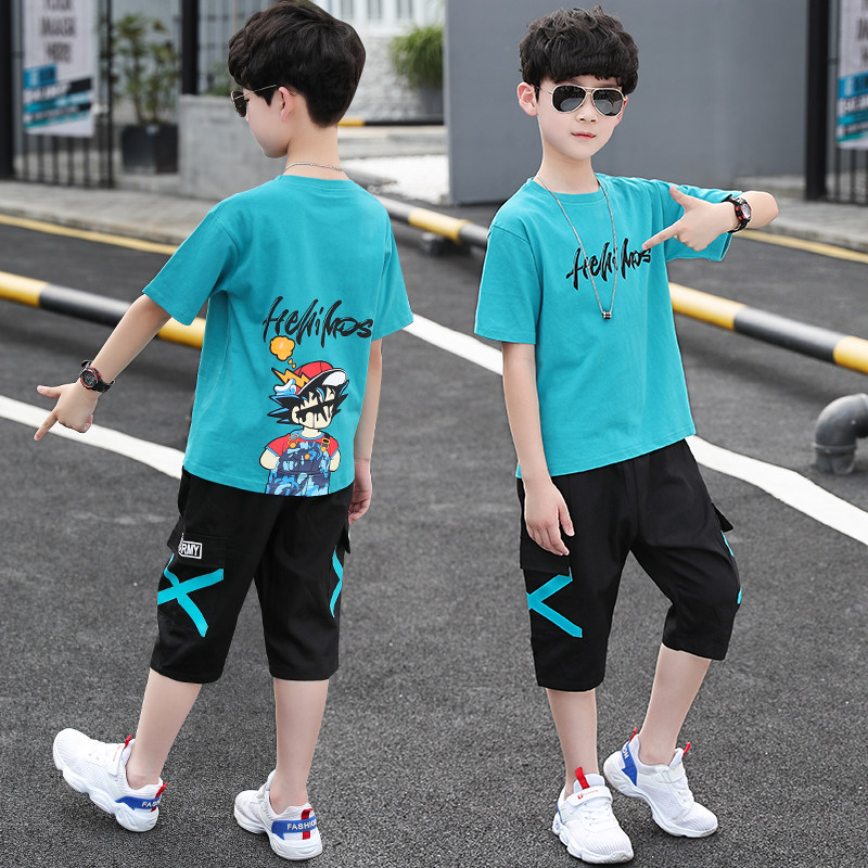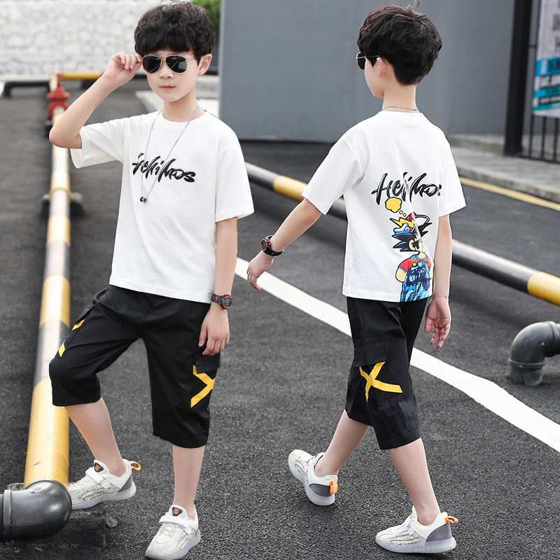 Boy summer suit summer handsome short-sleeved boy 2021 new children's clothing children's foreign air in the big children's summer tide