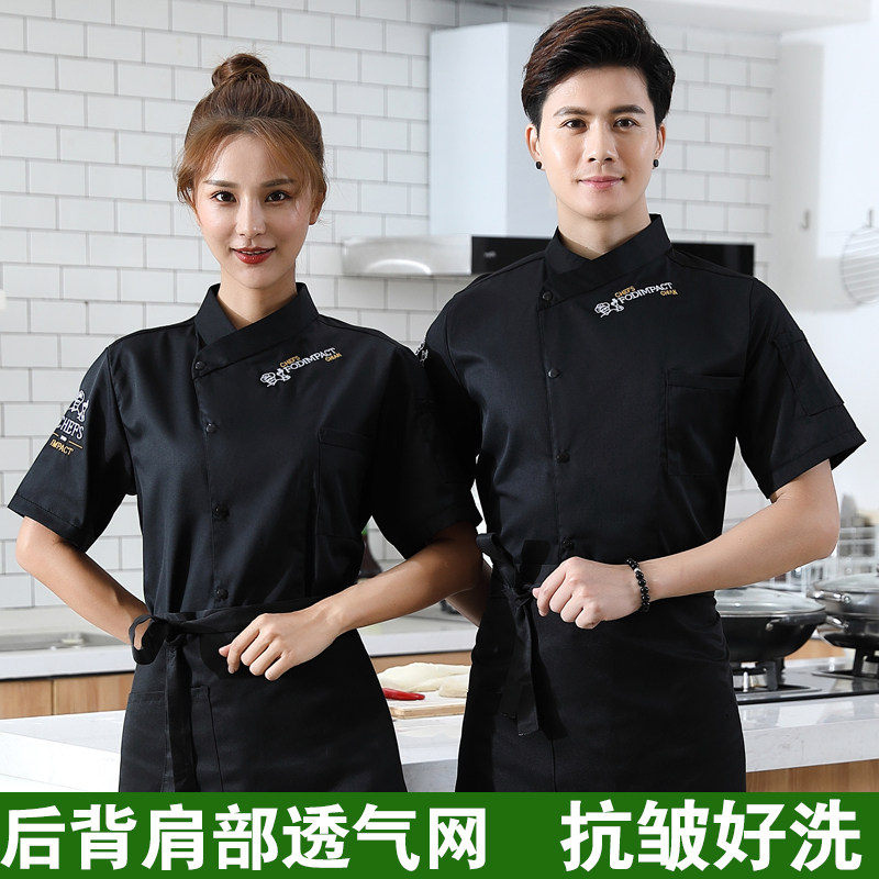 Breathable mesh chef overalls men's short-sleeved summer thin ice silk fabric hotel restaurant catering kitchen chef clothing