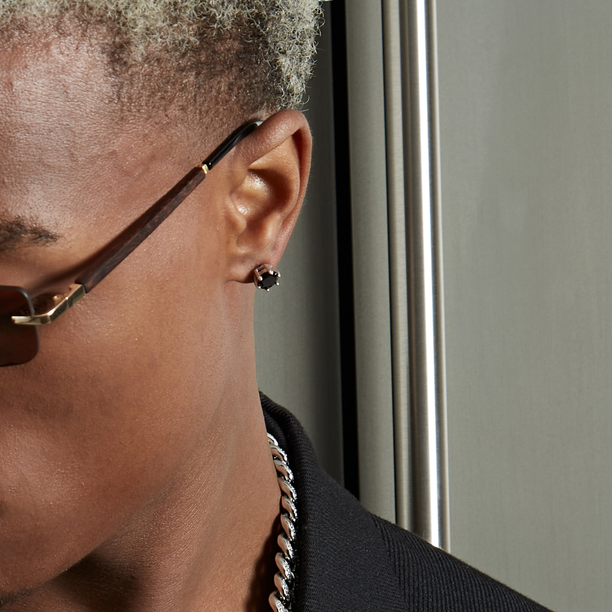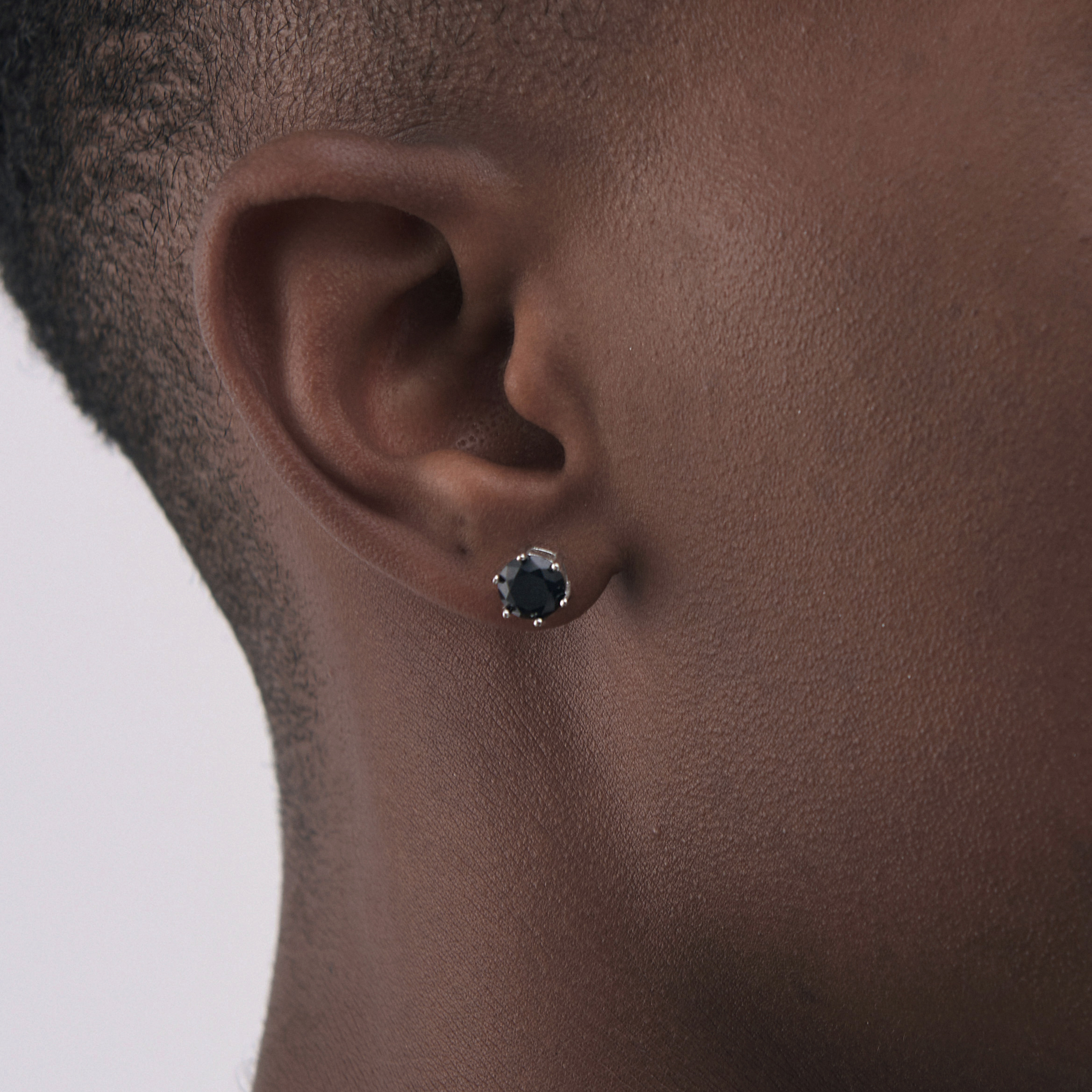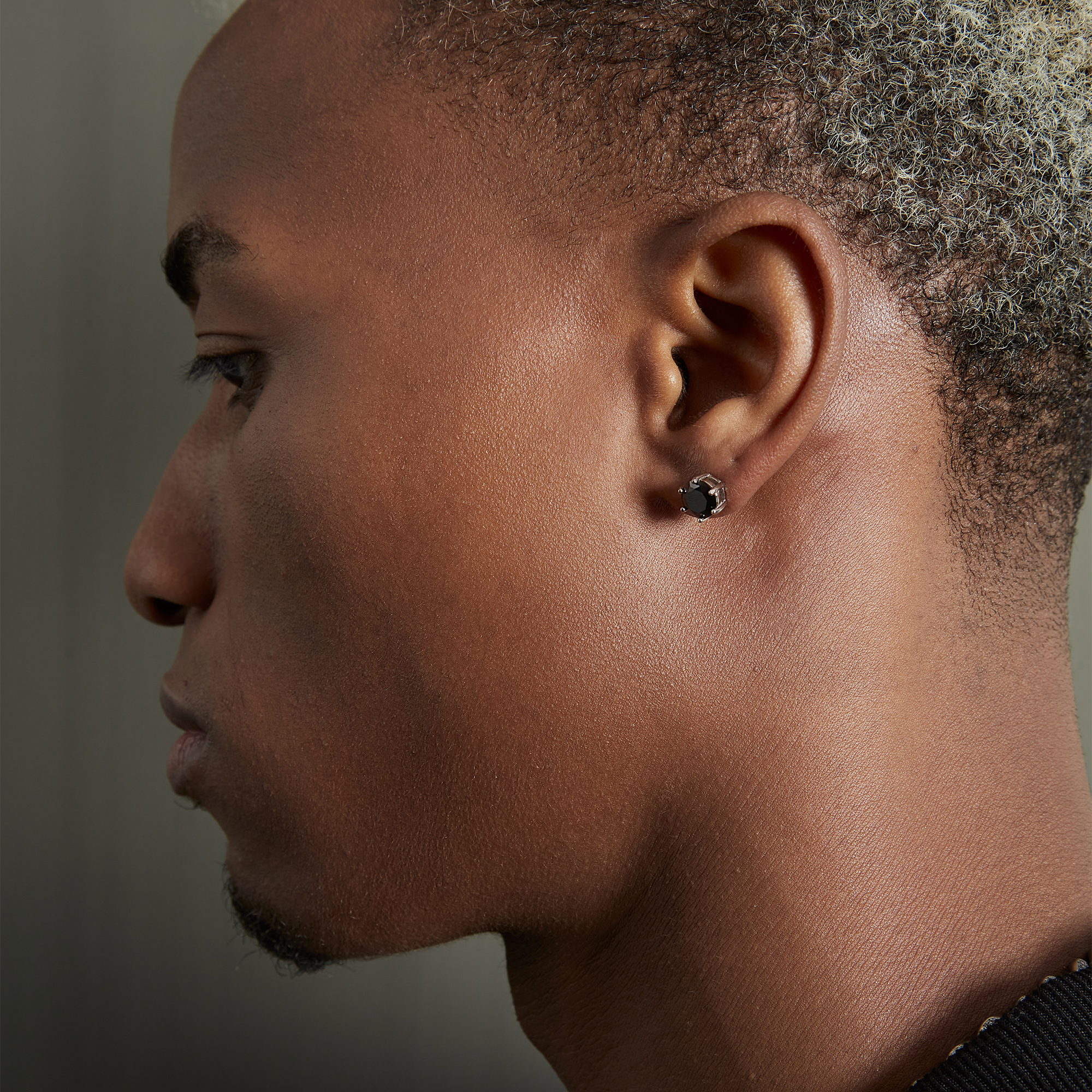 S925 pure silver natural black zircons stone male section European and American trend hip hop ear pin inlaid with street personality single Japan and South Korea