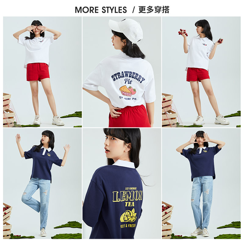 SPAO WOMEN's T-shirt 2021 summer new fashion POLO collar letter printing split short-sleeved SPRPB25S24