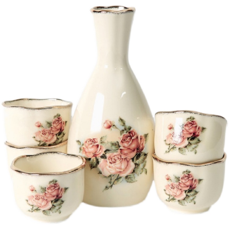 Pink Roses 1 wine pot 5 glasses red roses 1 wine pot 5 glasses