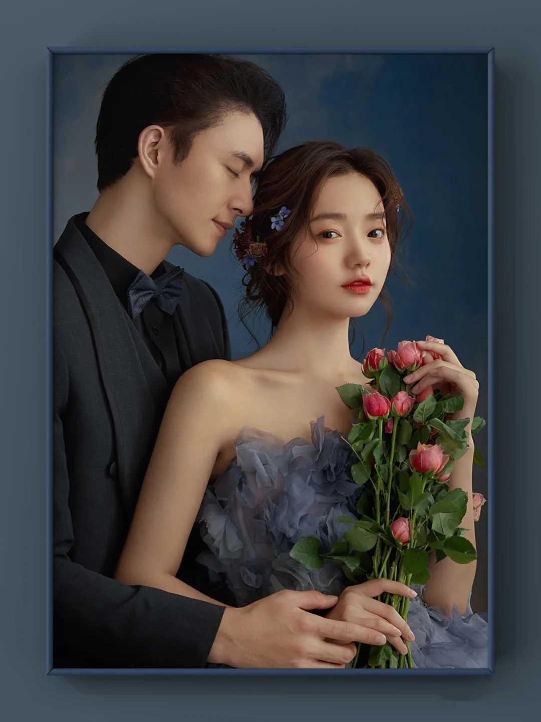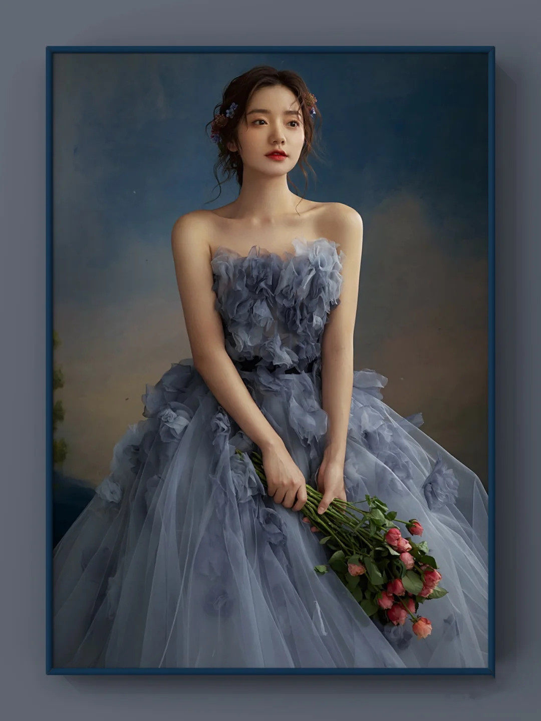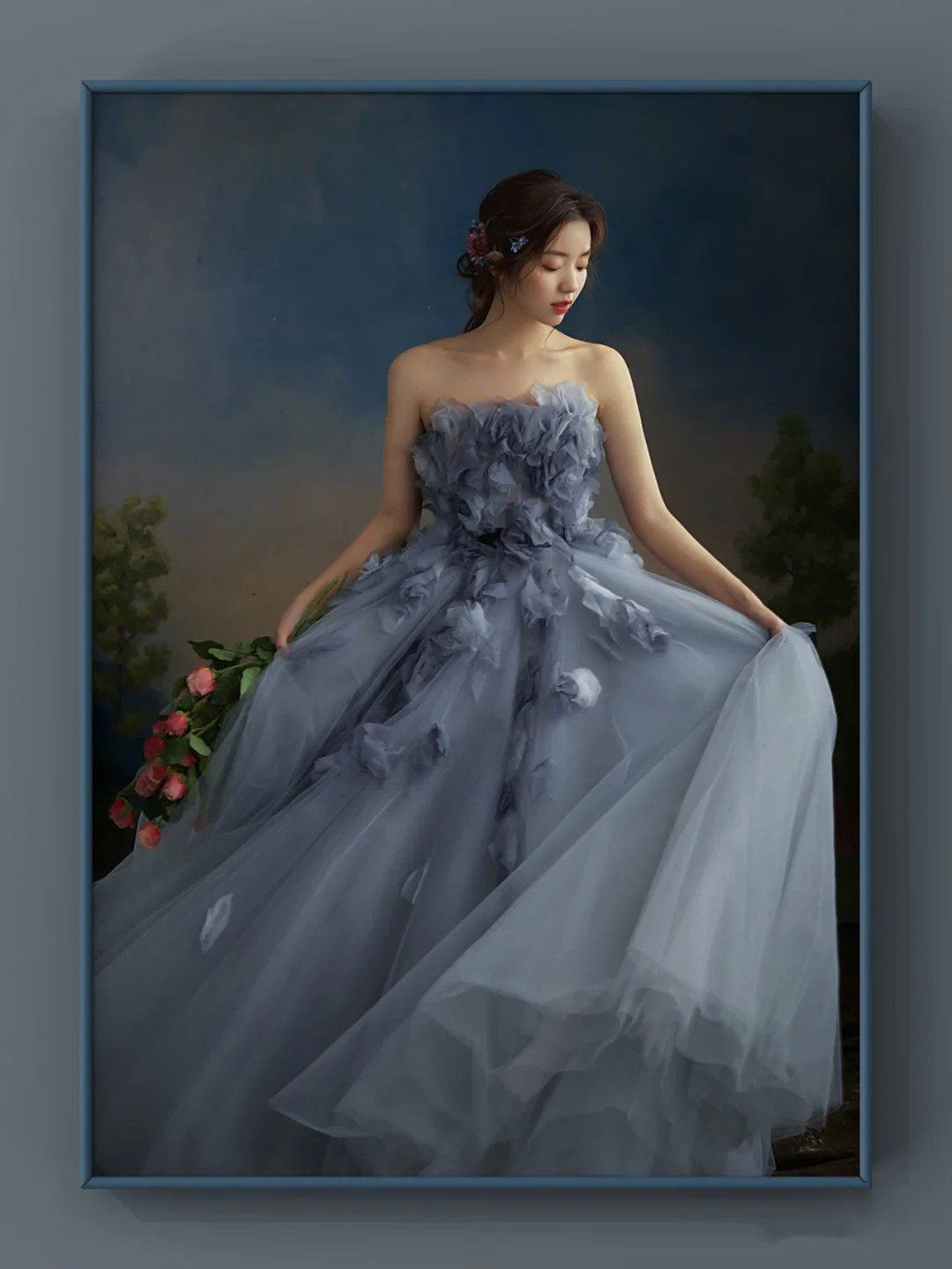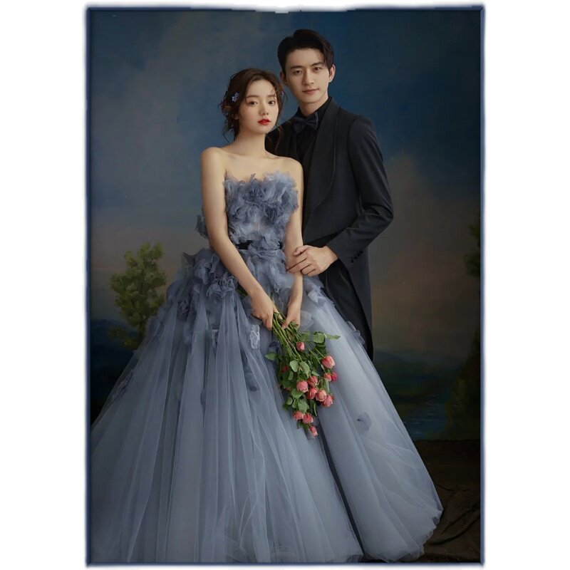 Photo studio theme clothing 2023 new couple Mori series travel photography photo wedding dress blue flower fairy oil painting dress