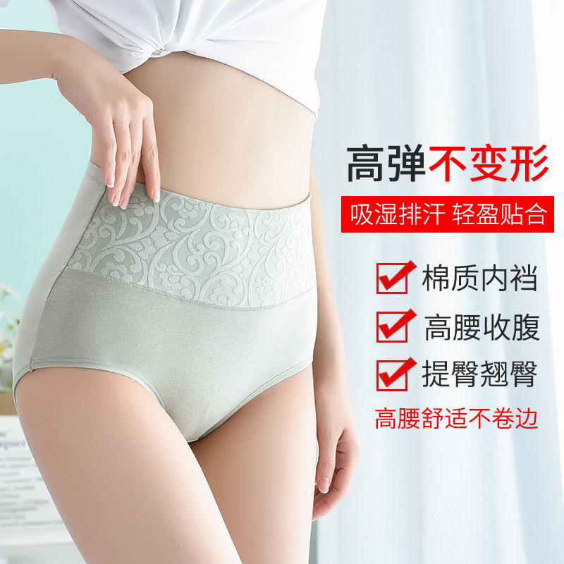 High waist plastic pure cotton underpants female simple jaw antibacterial mid-waist triangle pants large-yard buttock comfortable fat mm