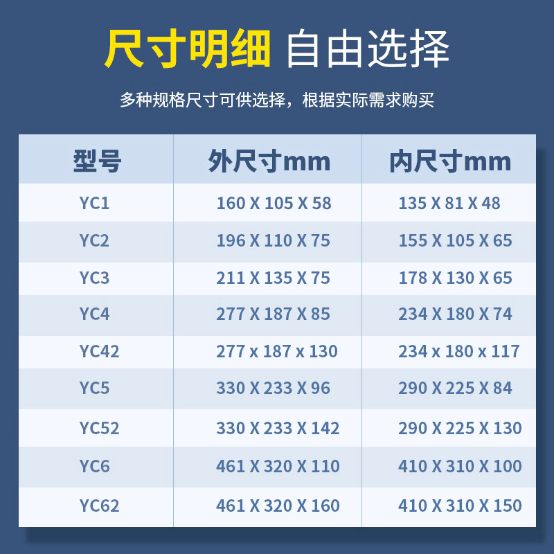 YC1-160X105X58mm YC2-196X110X75mm YC3-211X135X75mm YC4-277X1