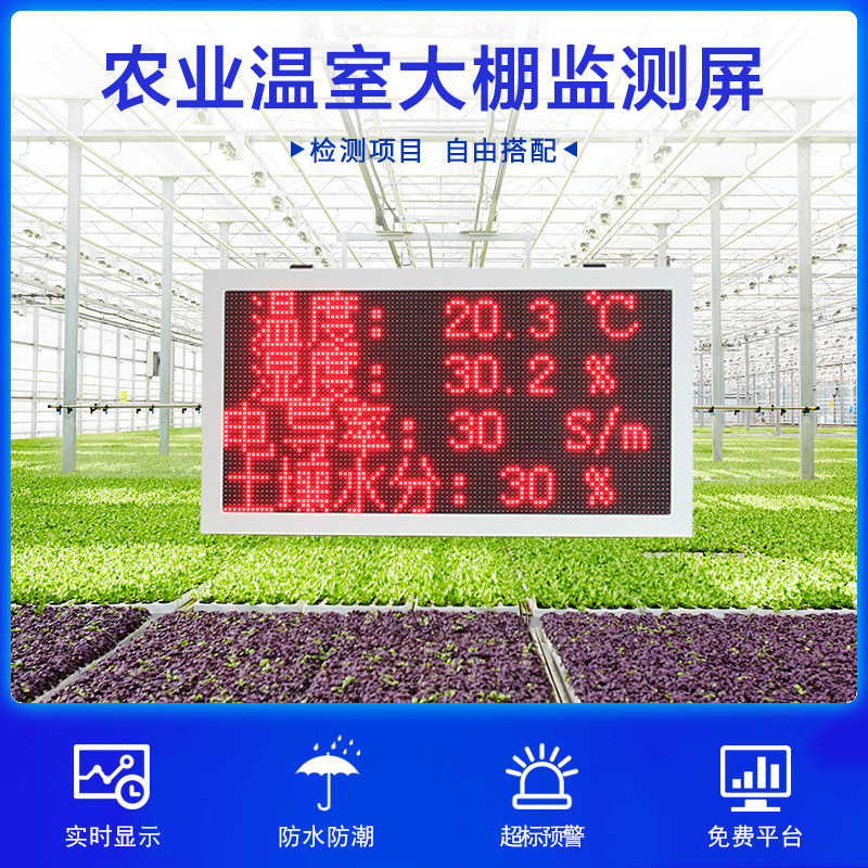 Outdoor monochrome coloured waterproof LED display agricultural greenhouse temperature and humidity monitoring illumination soil data acquisition