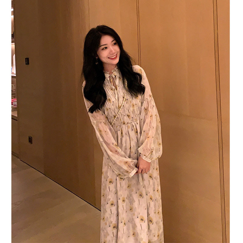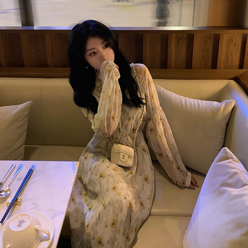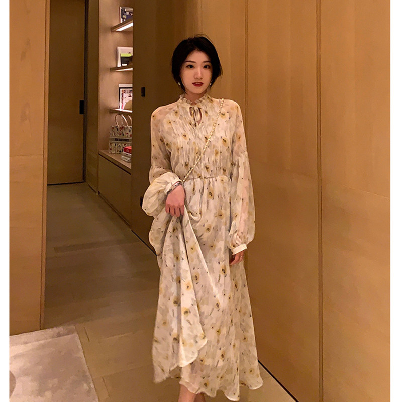 2022 new spring tea break French dress first love temperament super fairy sweet chiffon floral dress summer