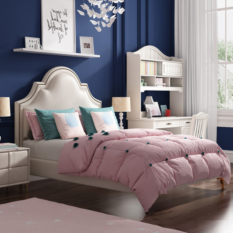 American teenager children's bed boy single bed light luxury solid wood modern minimalist leather bed girl princess 1 5 meters