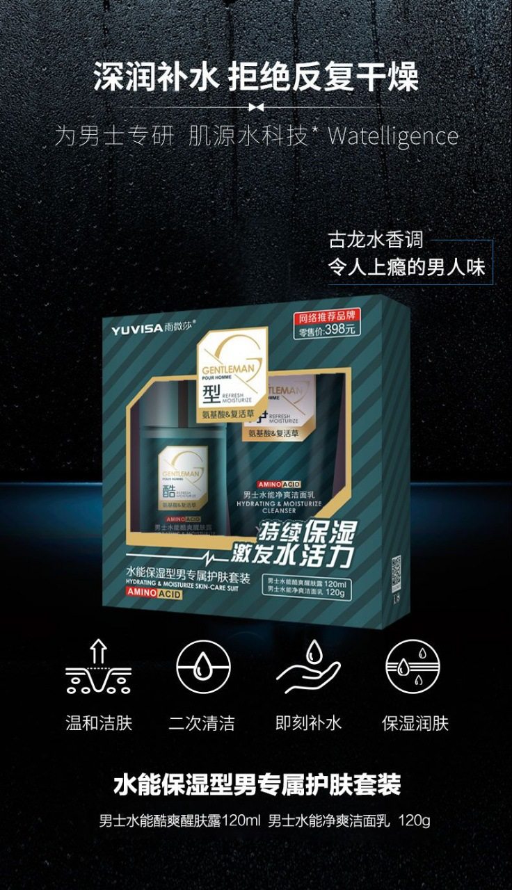 Net red with men's facial cleanser three-piece set amino acid foam facial cleanser resurrection grass skin moisturizing two-piece set