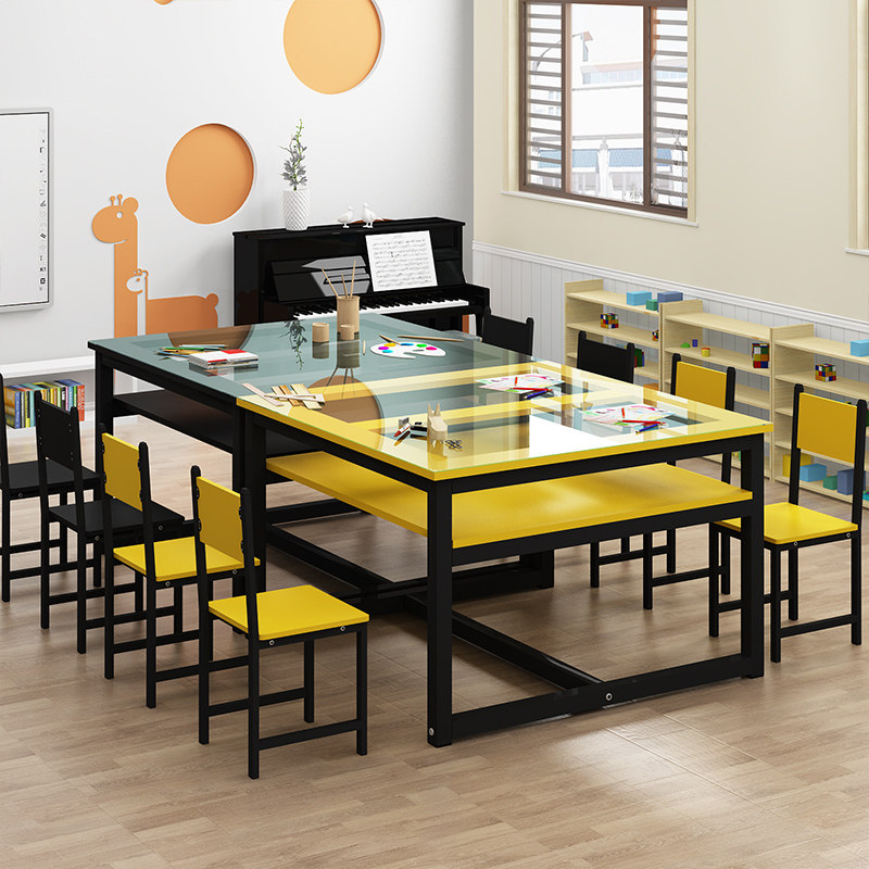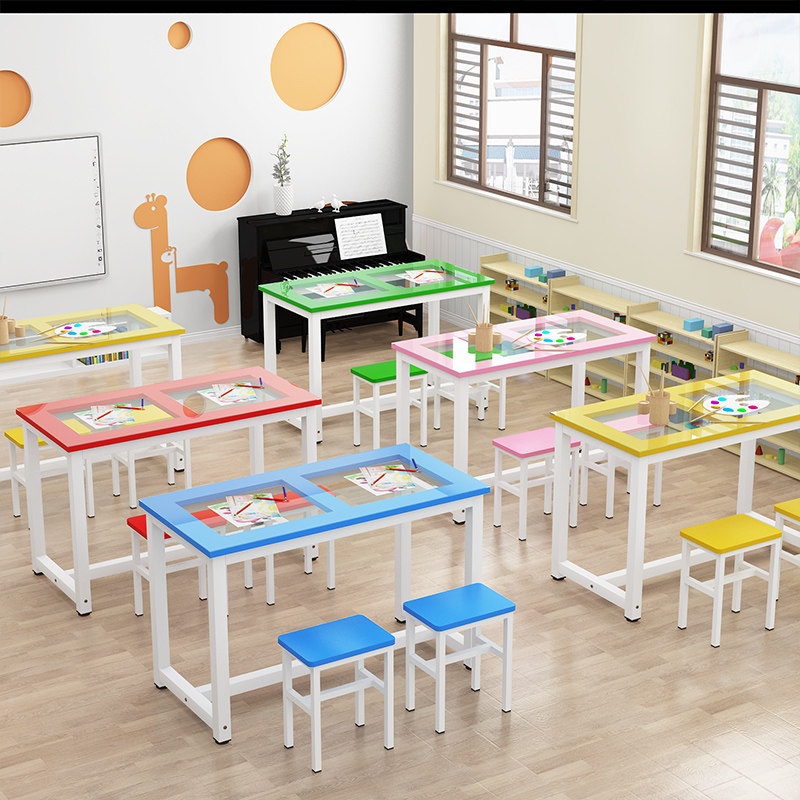 Glass Art Table Painting Table Kindergarten School Student Coaching Training Course Desk and Chair Handicrafts Drawing Desk