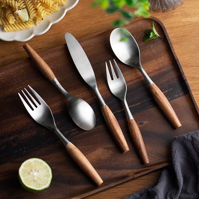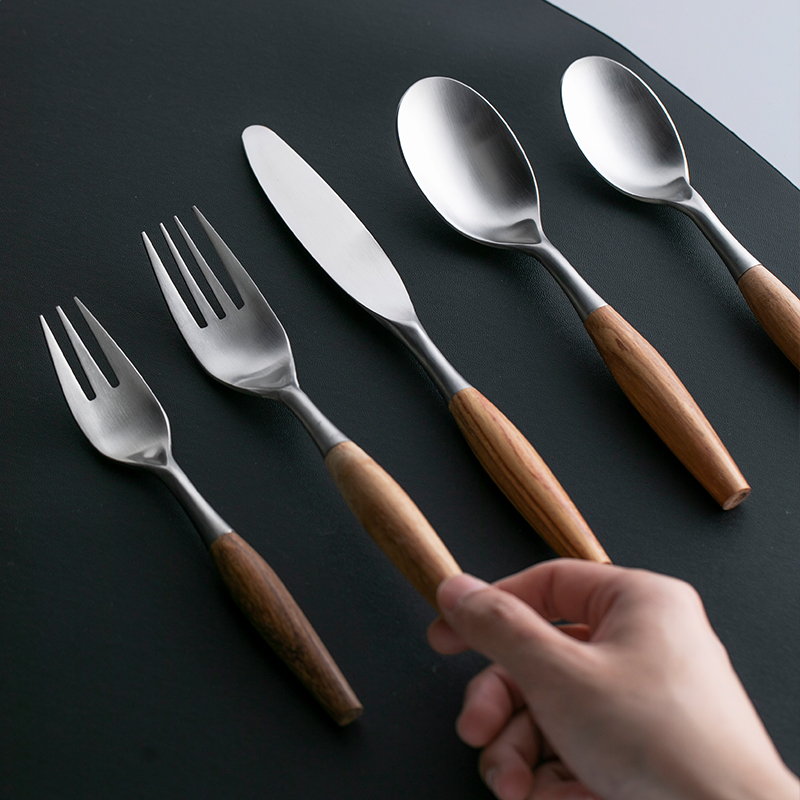 Mi Standers Delicate Flowers Pear Wood Knife Fork Spoon Upscale Stainless Steel Fork Spoon Sweet Pitchfork Retro Wood Handle Cutlery-Taobao