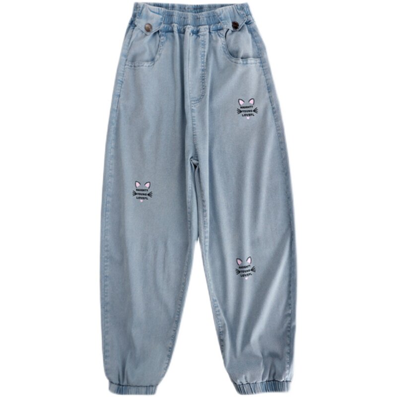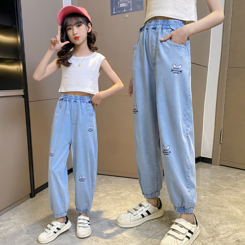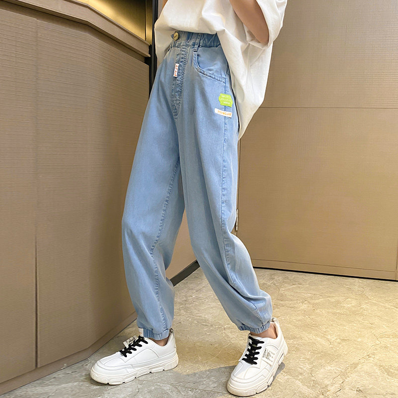 Girl's Summer Sky Silk Jeans Children Suit CUHK Girl Girl Summer Clothing Long Pants Thin Loose Spring Autumn Anti-mosquito Pants
