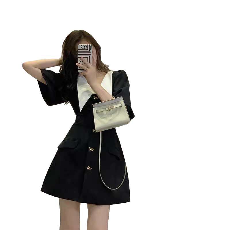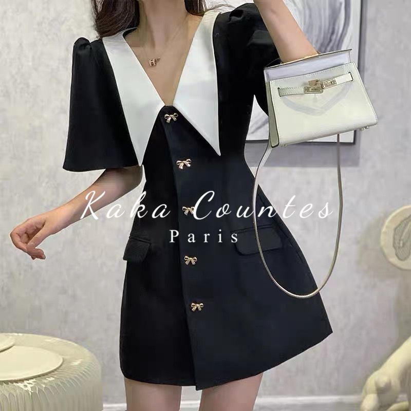 Sandro Moscoloni French style small fragrant wind bubble sleeveless dolls collar foreign dress Summer new little black dress women