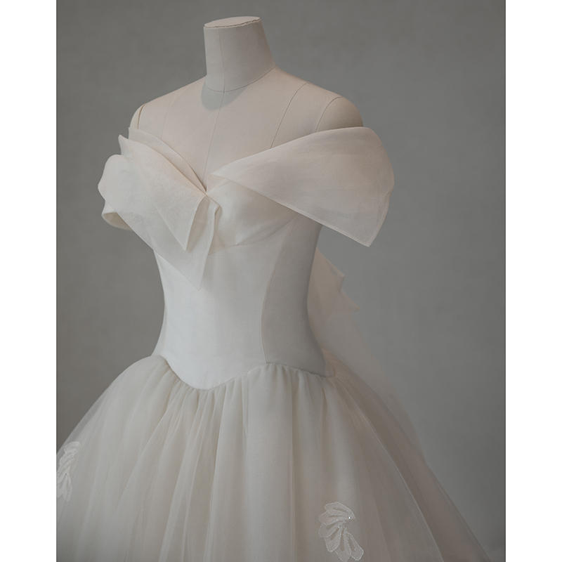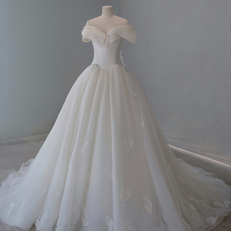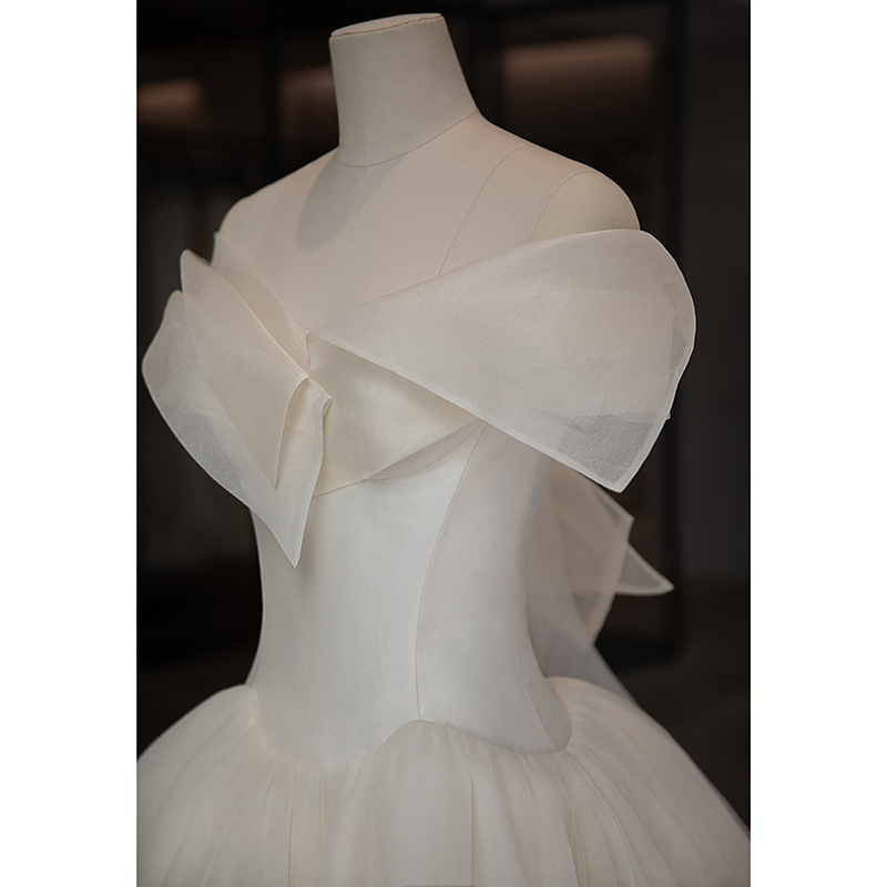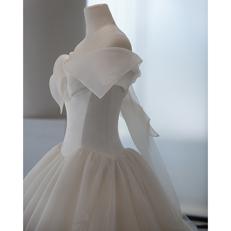 French-style light main wedding dress 2022 new bride high-quality texture one-shoulder small person trailing out the door yarn