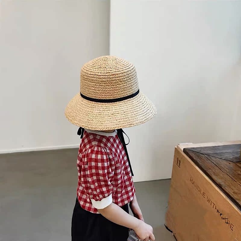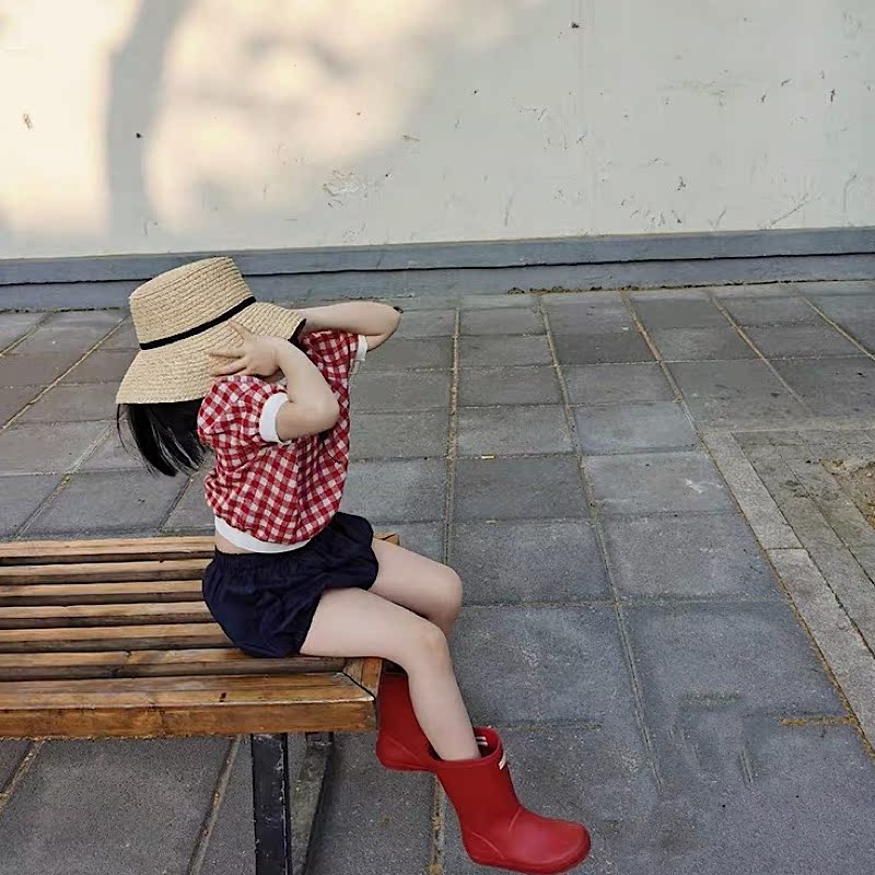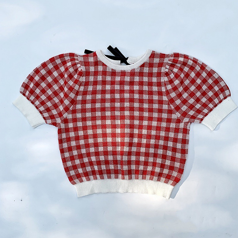 Summer Korean version Children knit T-shirt baby pure cotton plaid thin blouses butterfly knot lace cover with short sleeves bottom