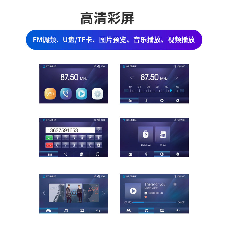 Bluetooth car MP5 car large screen MP3 radio card host U disk player MP4 video