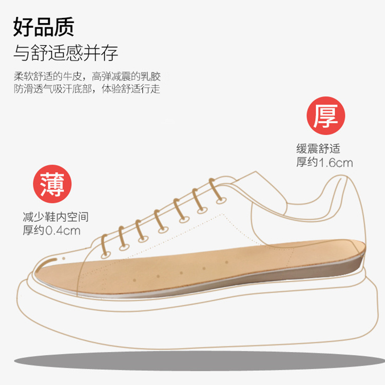 Leather insole women sweat-absorbing deodorant breathable thickened height-increasing high elastic latex shock absorption comfortable real cowskin white insole