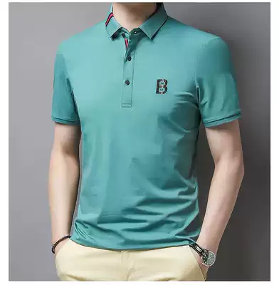 Hong Kong high-end polo shirt men's short-sleeved cotton lapel business casual trend brand men's slim trend casual T-shirt