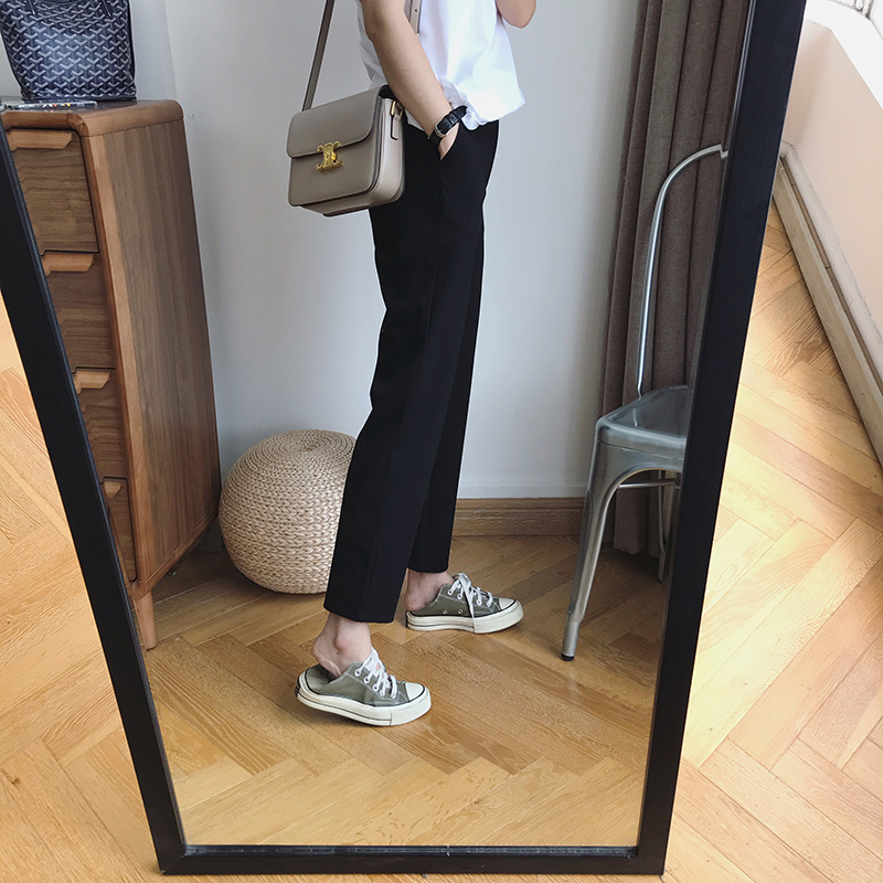 South Korea 2022 spring and autumn new elastic straight nine-point suit pants loose high waist drape casual pants women's cigarette pipe pants