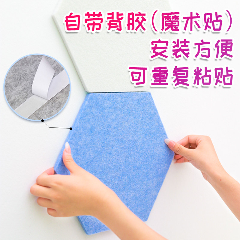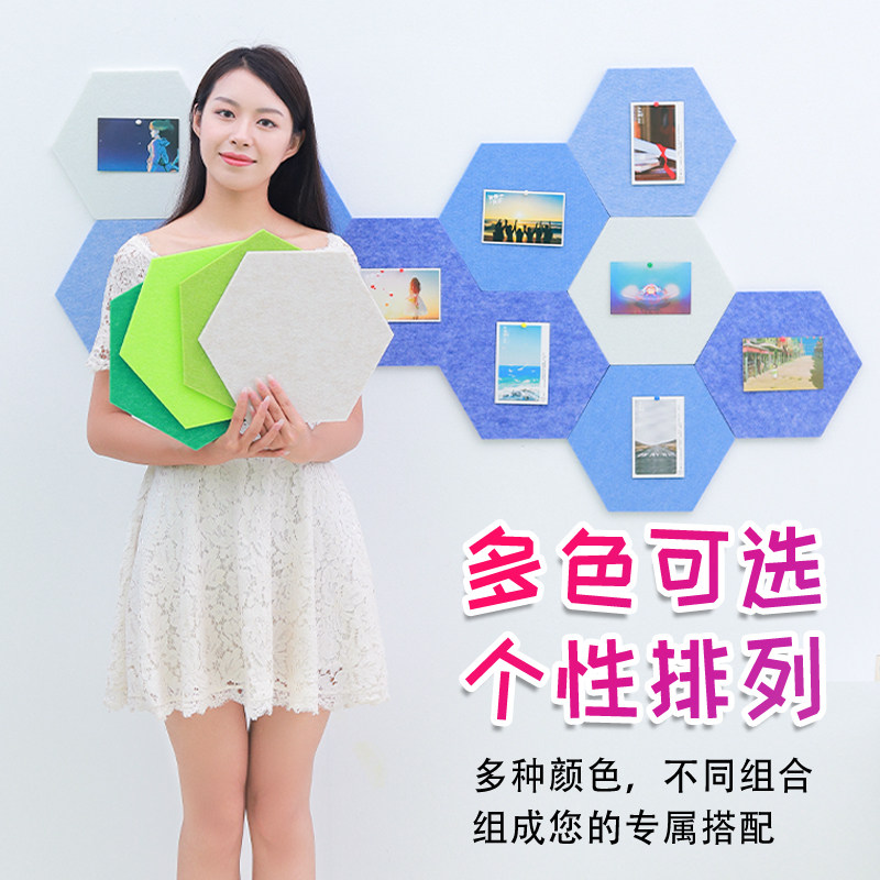 Back Gum Hexagon Felt Board Soft Wood Board Photo Wall Kindergarten Leave Message Board Custom Polygon Color DIY Creative Works Show Felt Wall Sticker Free to stick Home Wall decoration